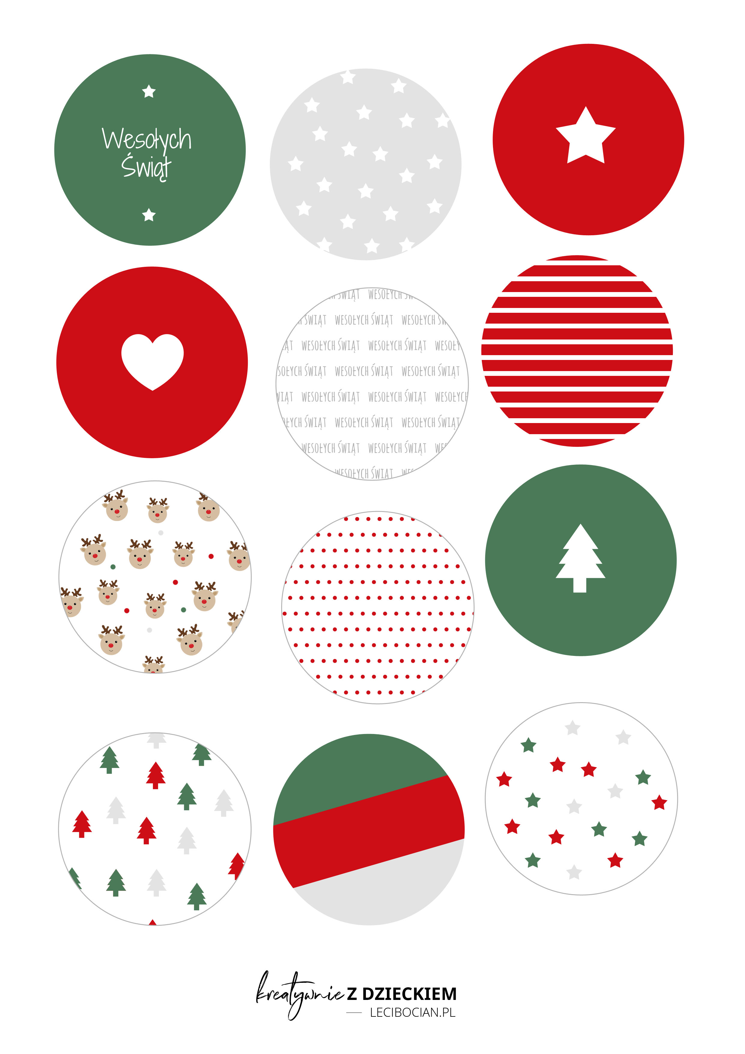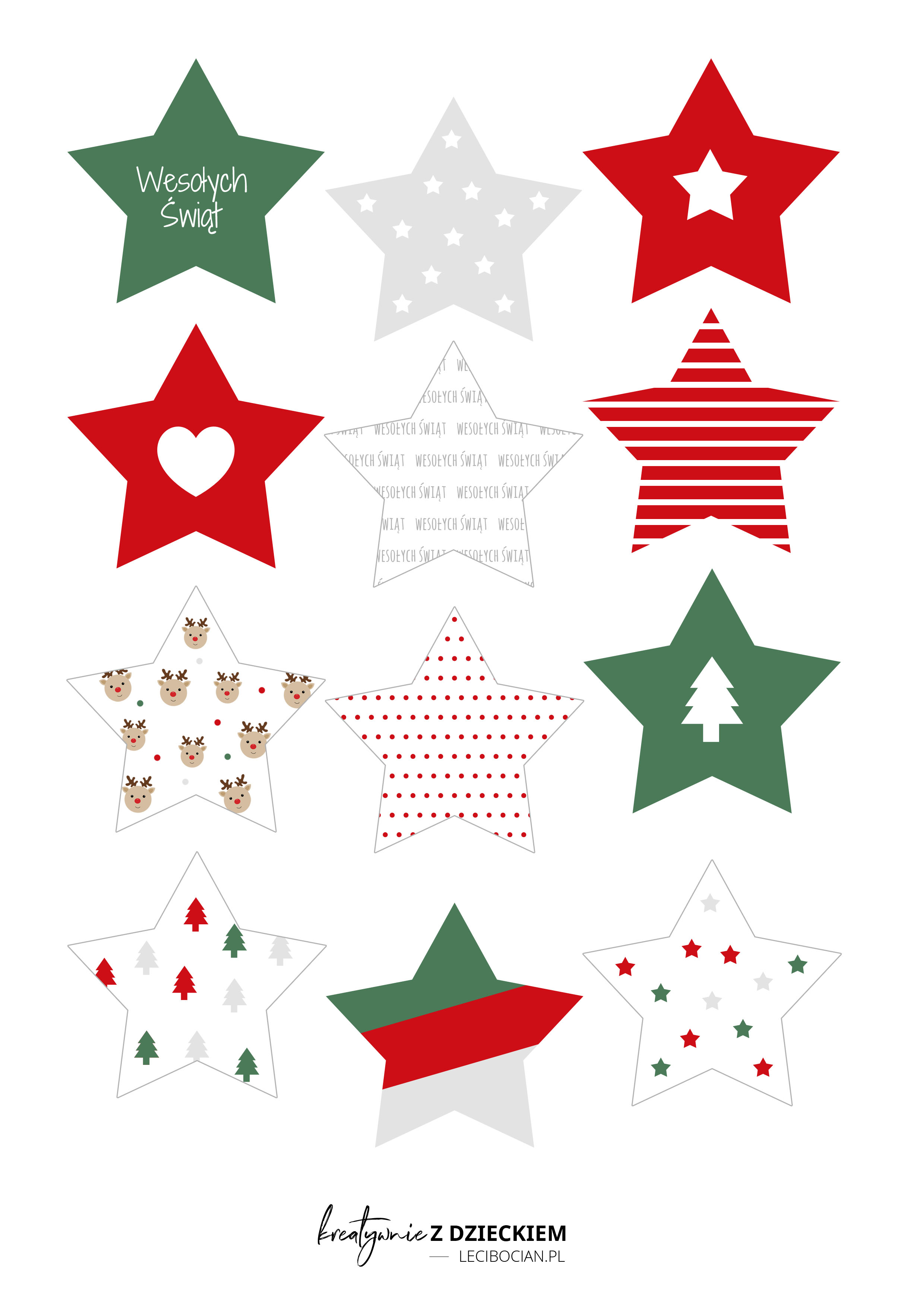 Przygotowałam dla Was 2 szablony, dzięki, którym możecie stworzyć klasyczne okrągłe bombki lub w kształcie gwiazdek. W każdym kształcie macie do wyboru aż 12 świątecznych motywów, z których możecie stworzyć wyjątkowe bobki z papieru.