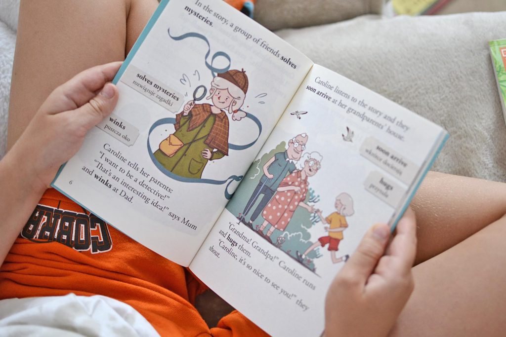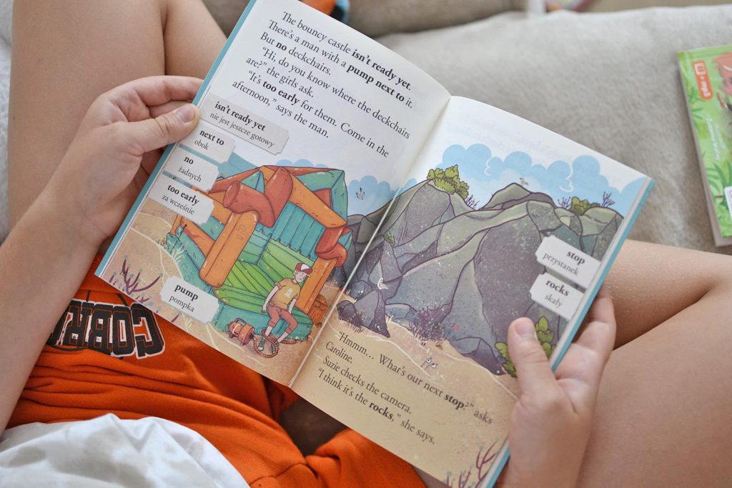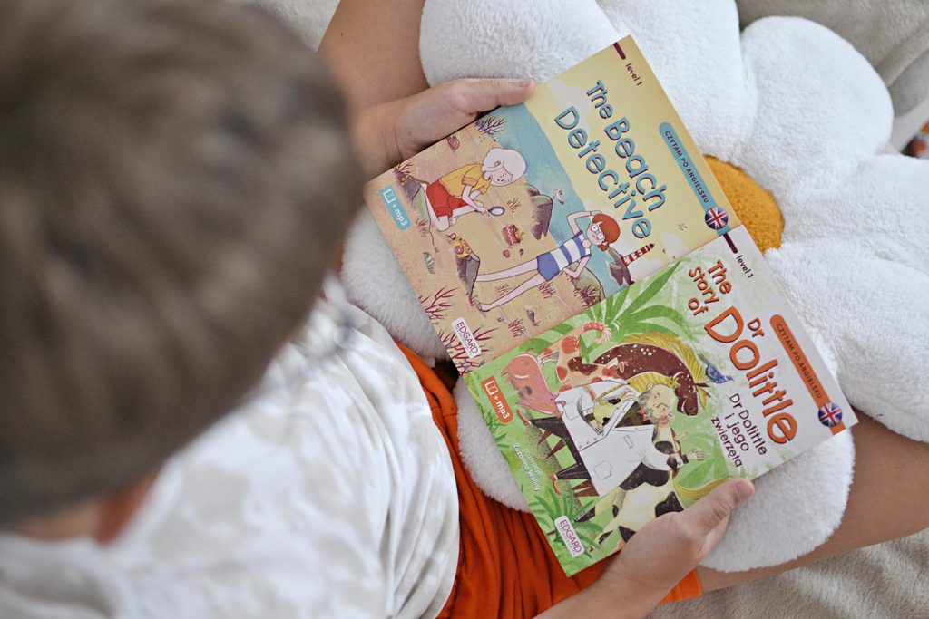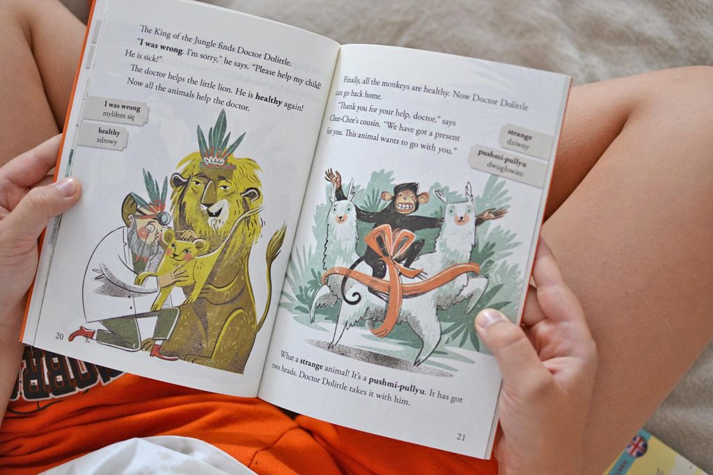 Seria zawiera adaptacje klasycznych bajek, opowiadania przygodowe i książki oparte na faktach, więc możecie wybrać dla dzieci opowiadania, które najbardziej je zainteresują! My czytaliśmy klasykę gatunku, czyli opowieść o Doktorze Dolittle i jego zwierzętach. Bardzo fajnie było przeczytać ją w języku angielskim. Druga książka była opowieścią o detektywach, czyli historią, której nie znaliśmy! Obie książki bardzo pozytywnie nas zaskoczyły. Mój syn przeczytał je samodzielnie i przetłumaczył młodszemu bratu. Mam wrażenie, że ta seria przemyślana jest od deski do deski – od wydania graficznego po merytoryczne.