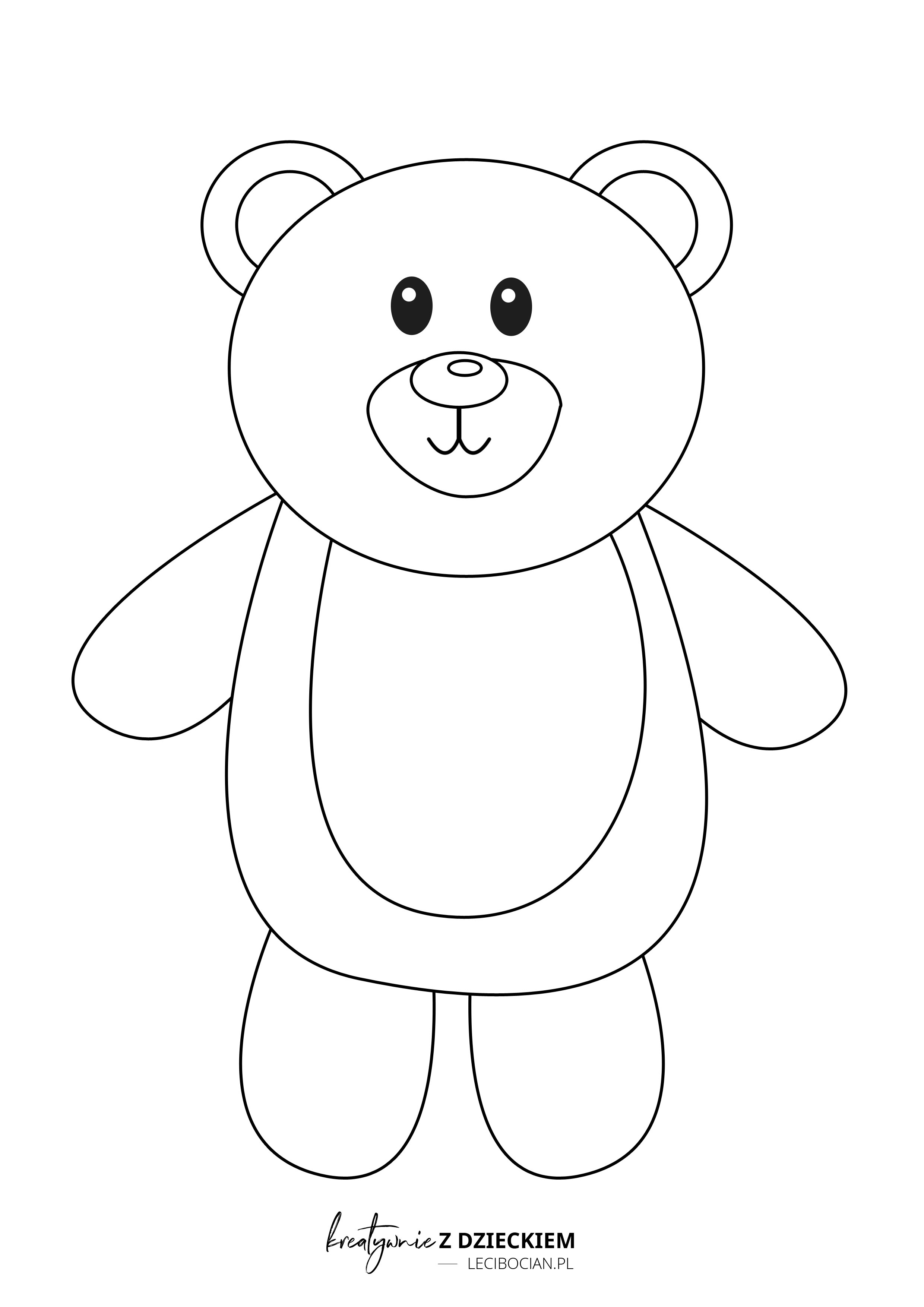Kolorowankę z pluszowym misiem można pokolorować, kredkami, farbami czy mazakami. Można wykorzystać ją jako szablon do wyklejenia plasteliną, czy papierem.