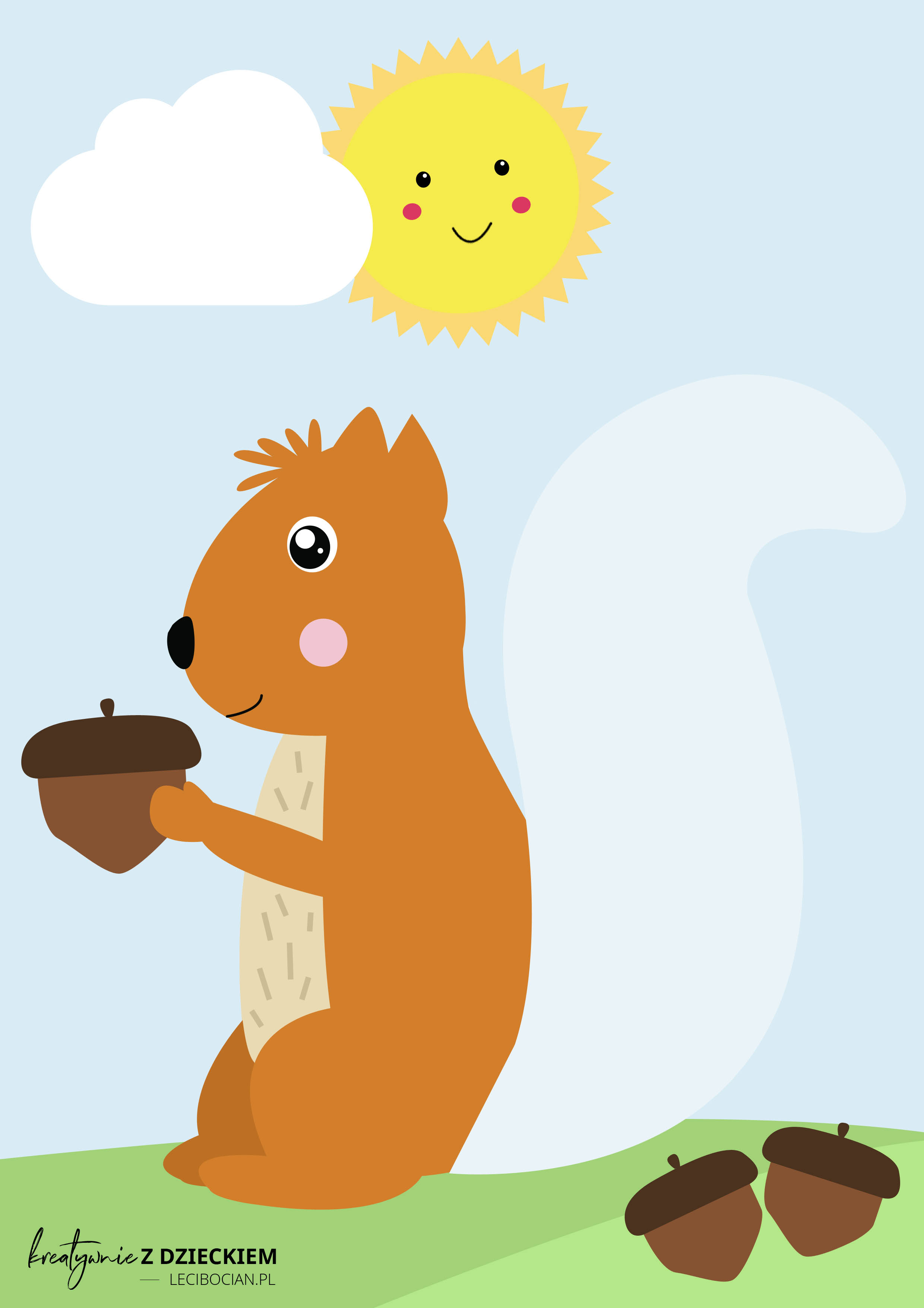 Tym razem zapraszam Was do zrobienia razem z nami jesiennego obrazka z wiewiórką. Wiewiórce zabrakło ogona i mam nadzieję, że razem ze swoimi dziećmi pomożecie jej go odzyskać, bo wiewiórka bez swojej wielkiej kity nie byłaby tą samą wiewiórką.