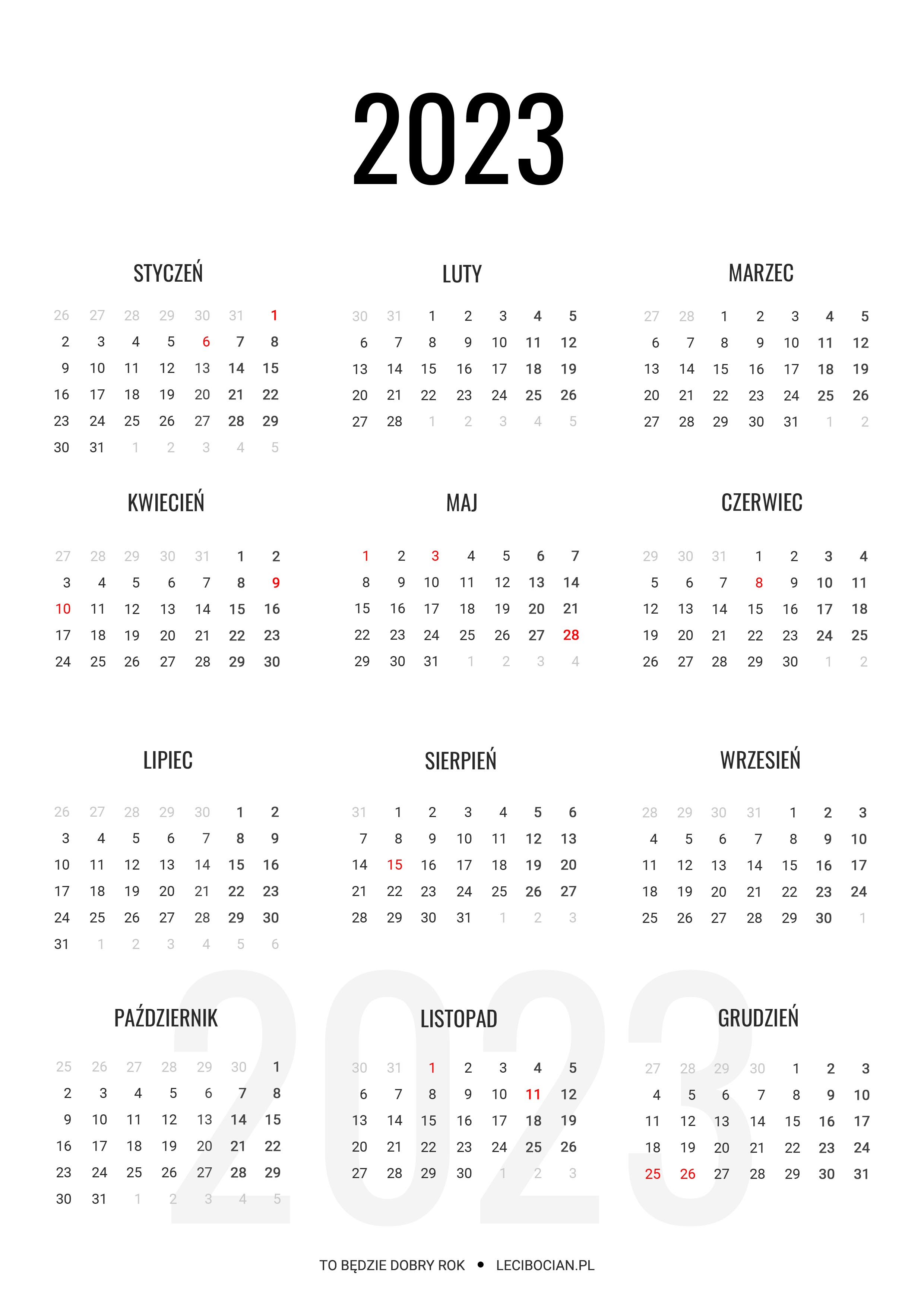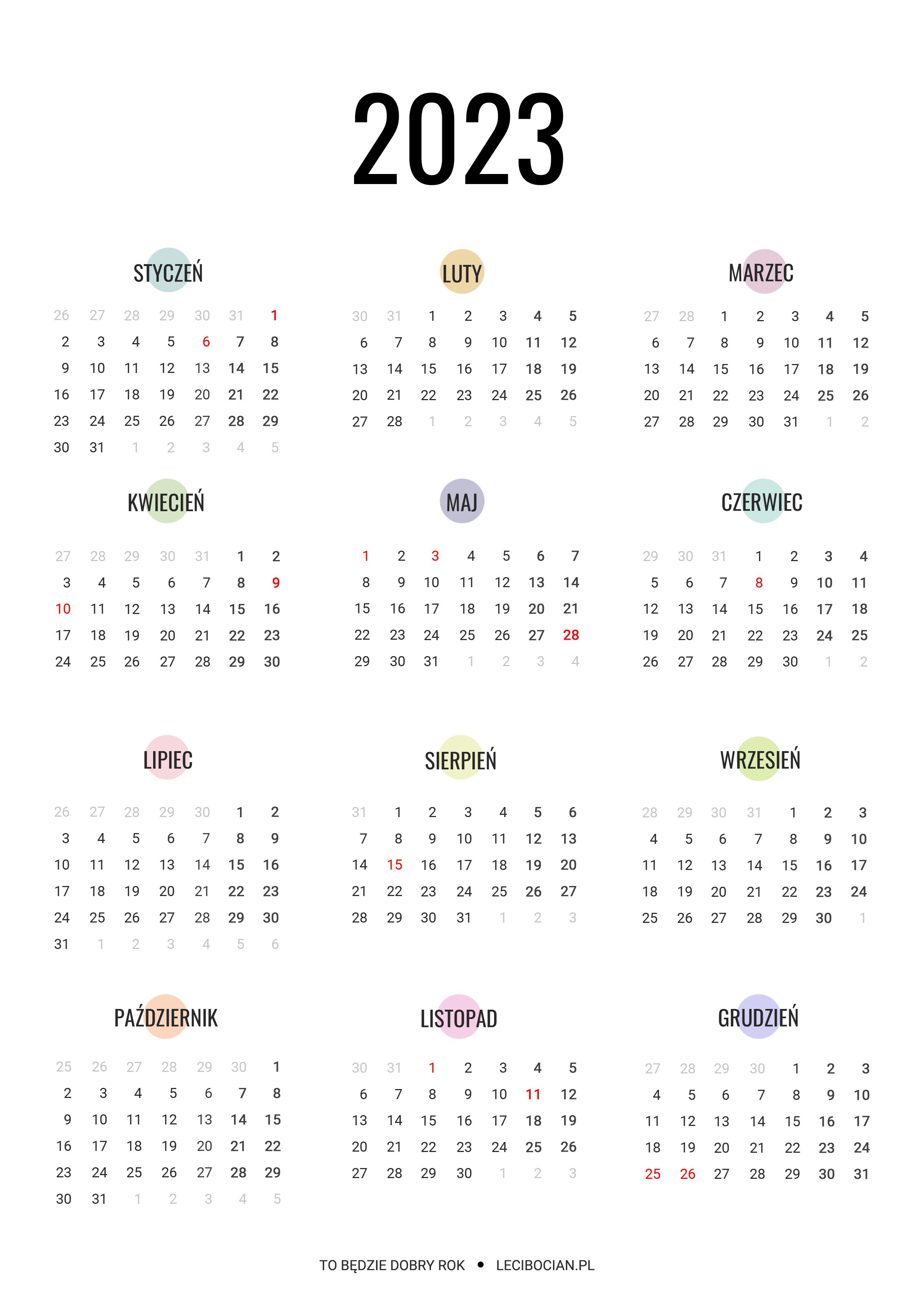 Darmowy kalendarz 2023 do druku do pobrania. Pobierz i wydrukuj kalendarz 2023 na cały rok 2023 w wersji czarno-białej i kolorowej.