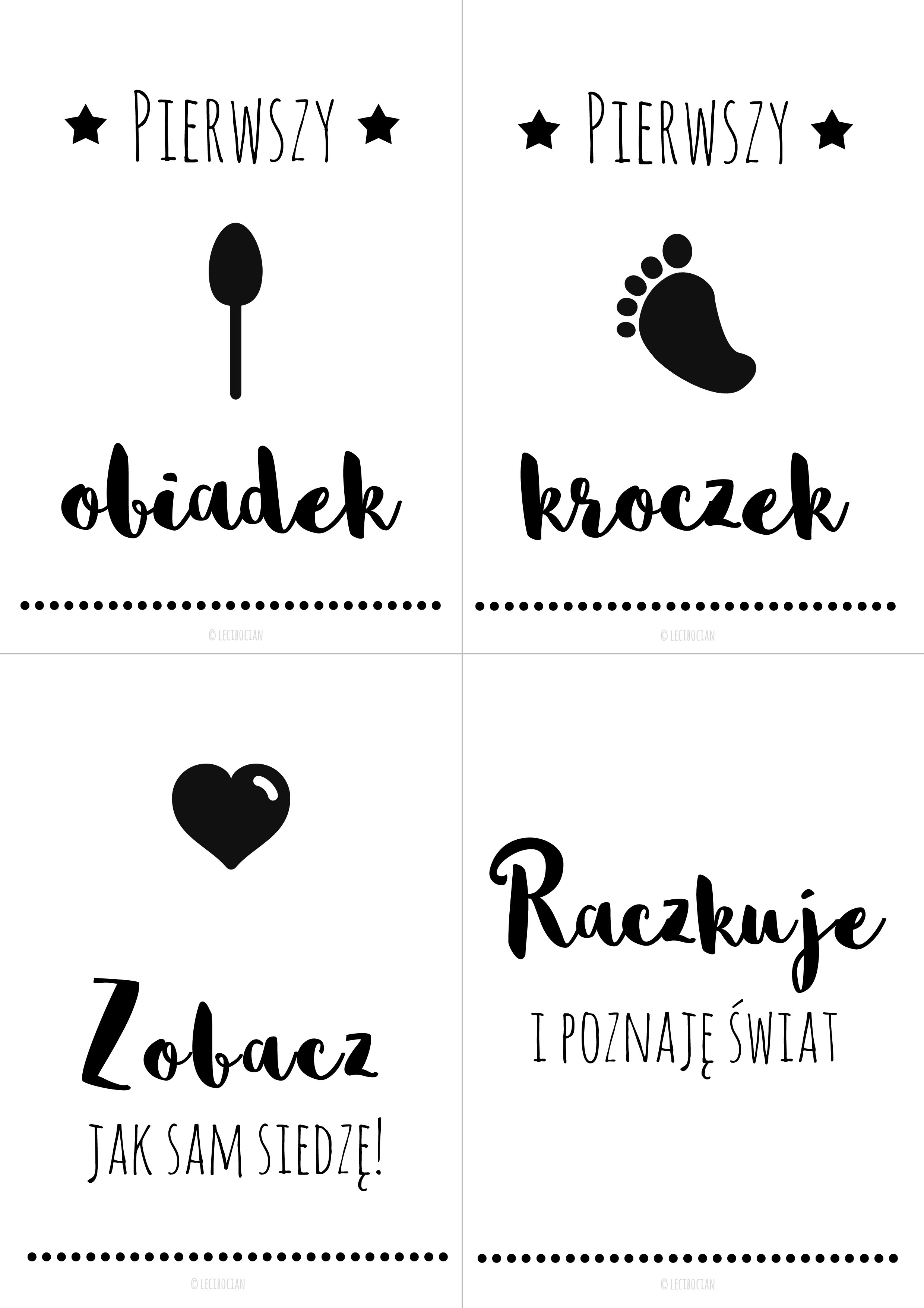 Dziś mam dla Was kolejne karty do zdjęć. To już trzecia seria moich karty. Tym razem karty są to karty, które pokazują Ważne momenty w życiu dziecka. Przydają się i dla niemowlaka, i dla malucha. Są one uzupełnieniem kart do zdjęć Mój pierwszy rok. Mam nadzieję, że dzięki nim stworzycie niezwykłe zdjęcia swoim dzieciom. Jeśli publikujesz zdjęcia z moimi kartami na Facebooku, czy Instagramie proszę oznacz mnie na zdjęciu lub dodaj #lecibocianpl. Uwielbiam oglądać Wasze zdjęcia z moimi grafikami do druku!