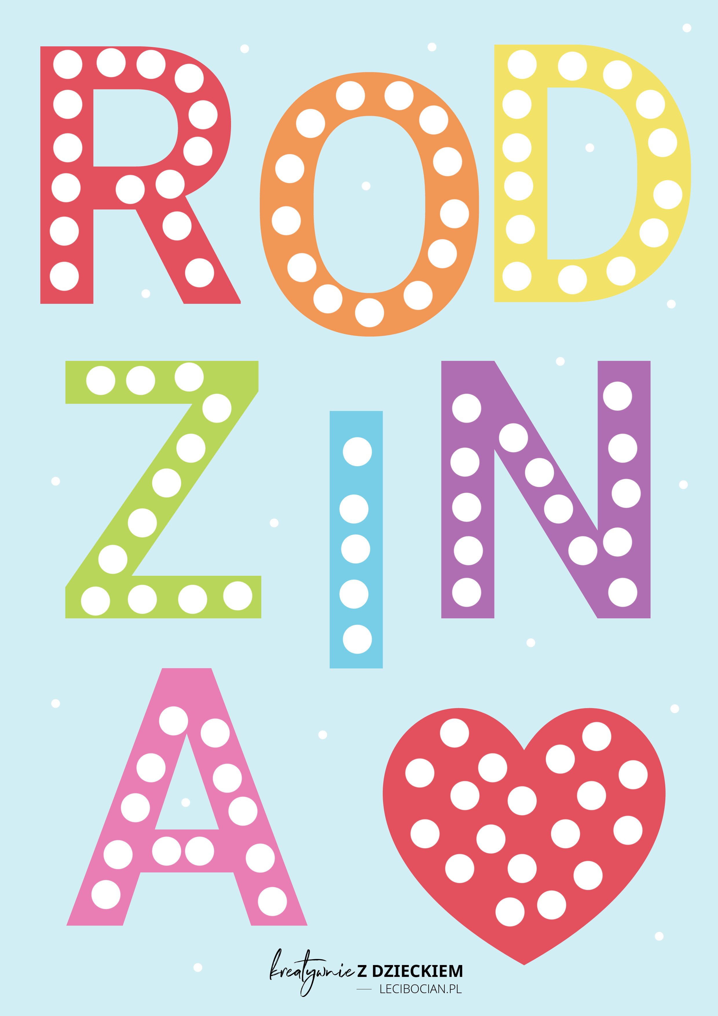 Karty pracy na Dzień rodziny, czyli wyklejanka dla dzieci ze napisem rodzina idealna na pracę plastyczną z okazji Dnia rodziny. Pobierz, wydrukuj i baw się kreatywnie!