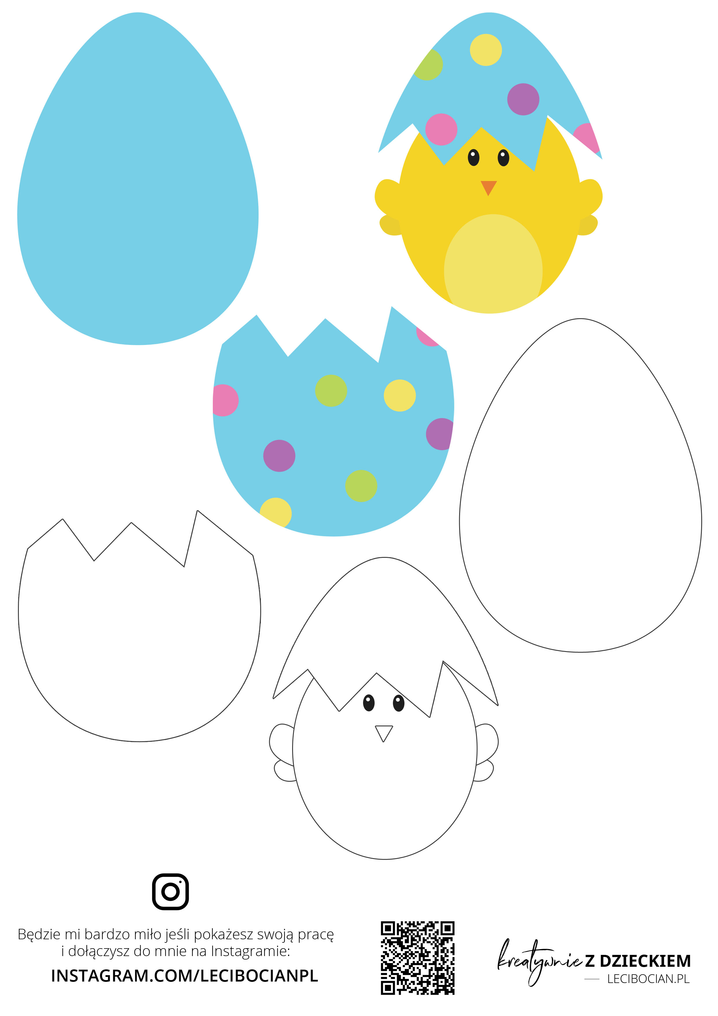Wytnij elementy kurczaczka z szablonu. Sklej ze sobą za pomocą kleju i gotowe! Miłej zabawy! ♥
