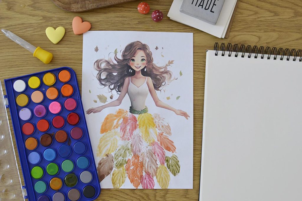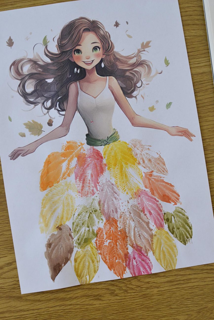 Stwórz swoją Panią Jesień z suknią z odbijanych liści! 🍂 To świetna zabawa plastyczna, która pozwala odkryć magię jesiennych barw, pobudza wyobraźnię i sprawia, że każdy liść zamienia się w wyjątkowy wzór. Twoja praca będzie niepowtarzalna – tak jak sama jesień!