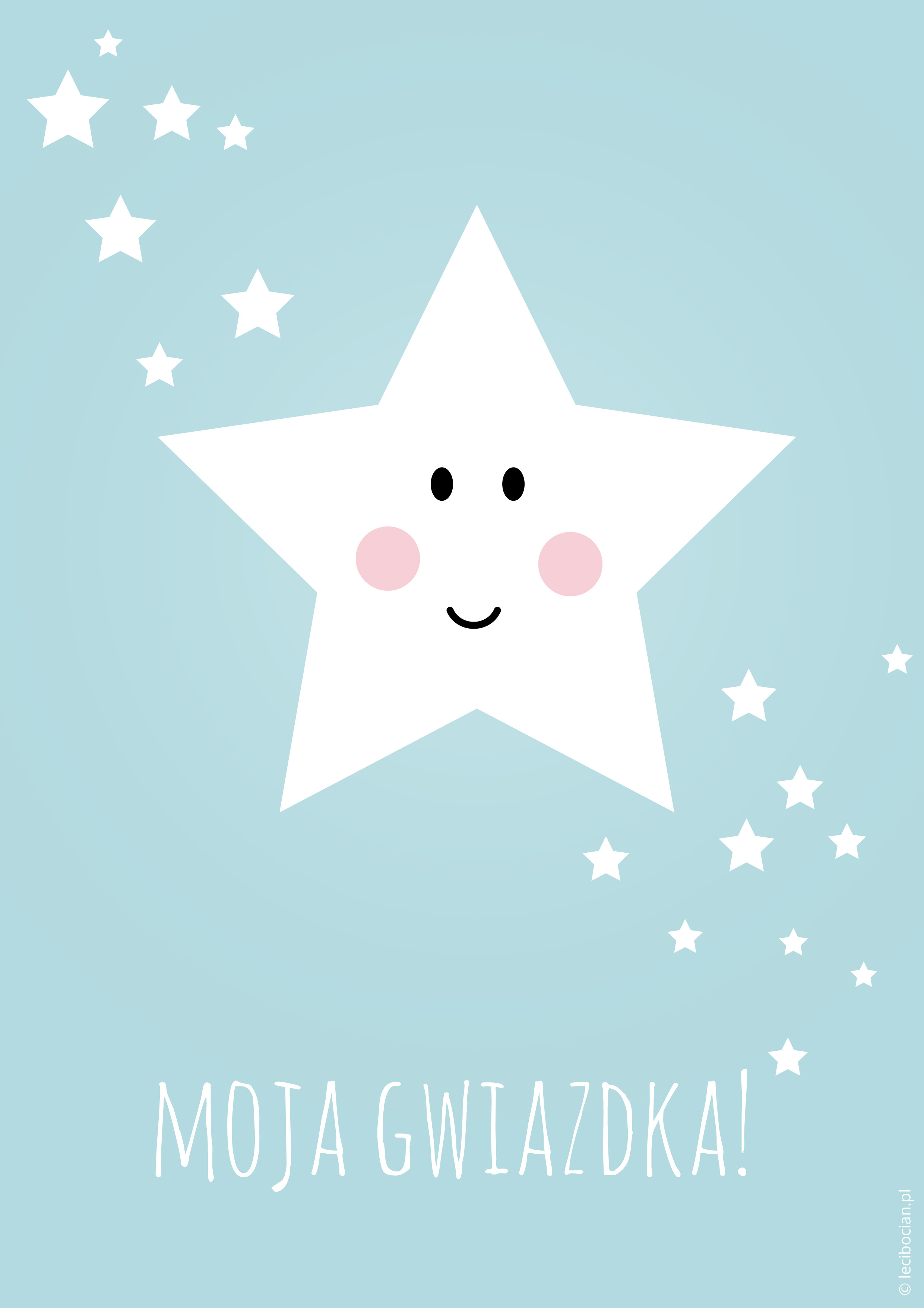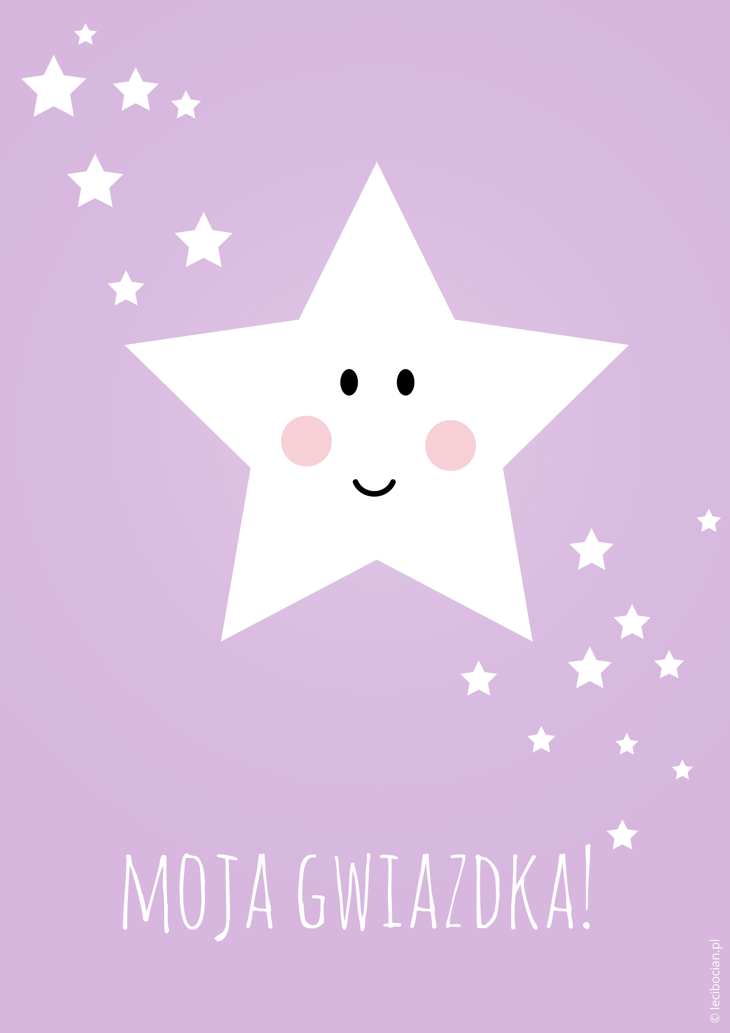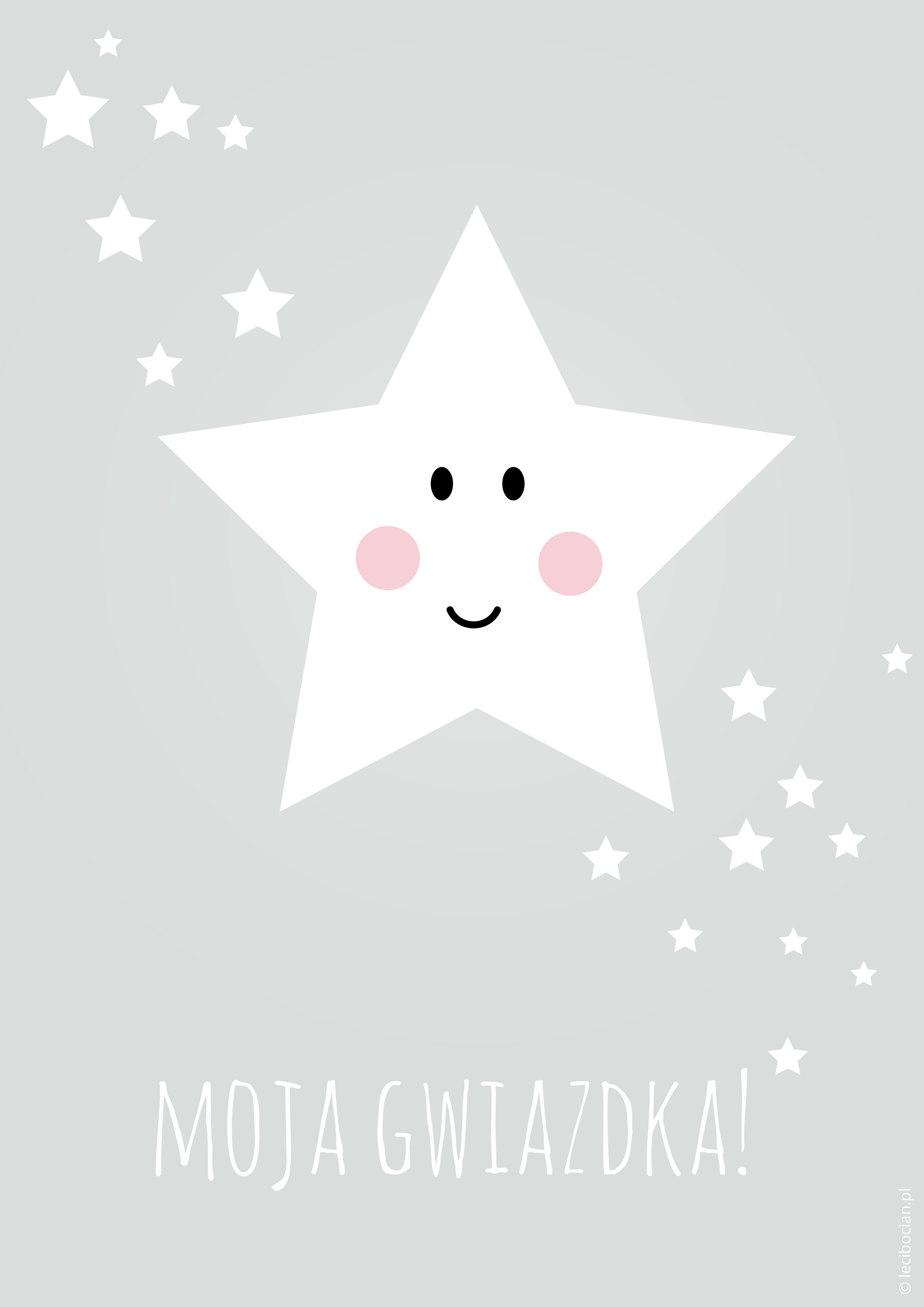 Plakat z gwiazdką możecie pobrać w 5 pastelowych kolorach: różowym, niebieskim, miętowym, fioletowym i szarym. Na plakacie znalazła się uśmiechnięta gwiazdka i napis: Moja gwiazdka. To, który kolor wybierasz?