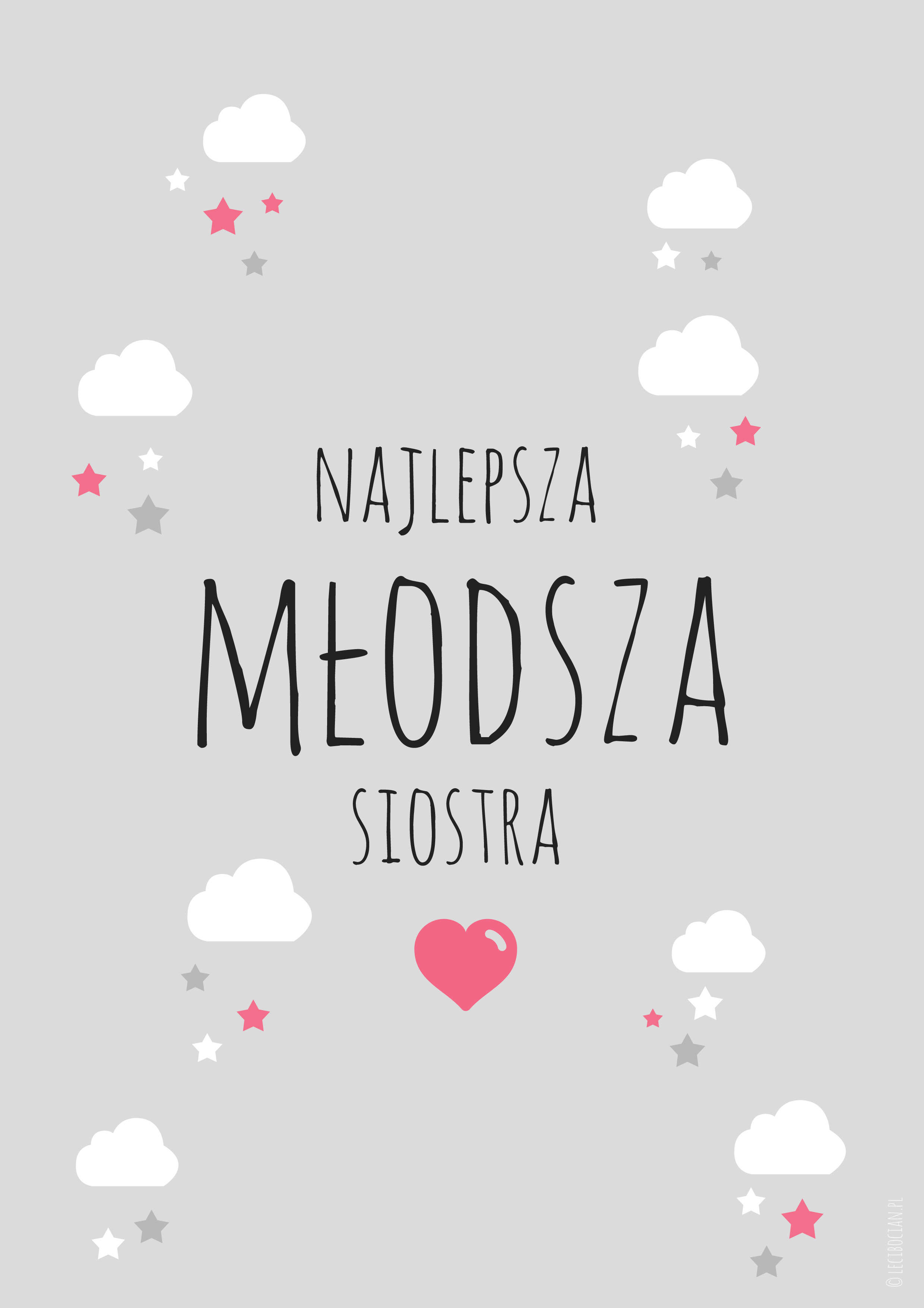 Dziś mam dla Was plakaty dla rodzeństwa. W zależności od tego jak liczna jest Wasza rodzina przygotowałam plakaty: starsza siostra, starszy brat, młodsza siostra, młodszy brat. Do wyboru macie plakaty w wersji czarno-białej i szarej. Mam nadzieję, że Wam się spodobają! Koniecznie dajcie znać w komentarzach co sądzicie o plakatach dla rodzeństwa! 🙂