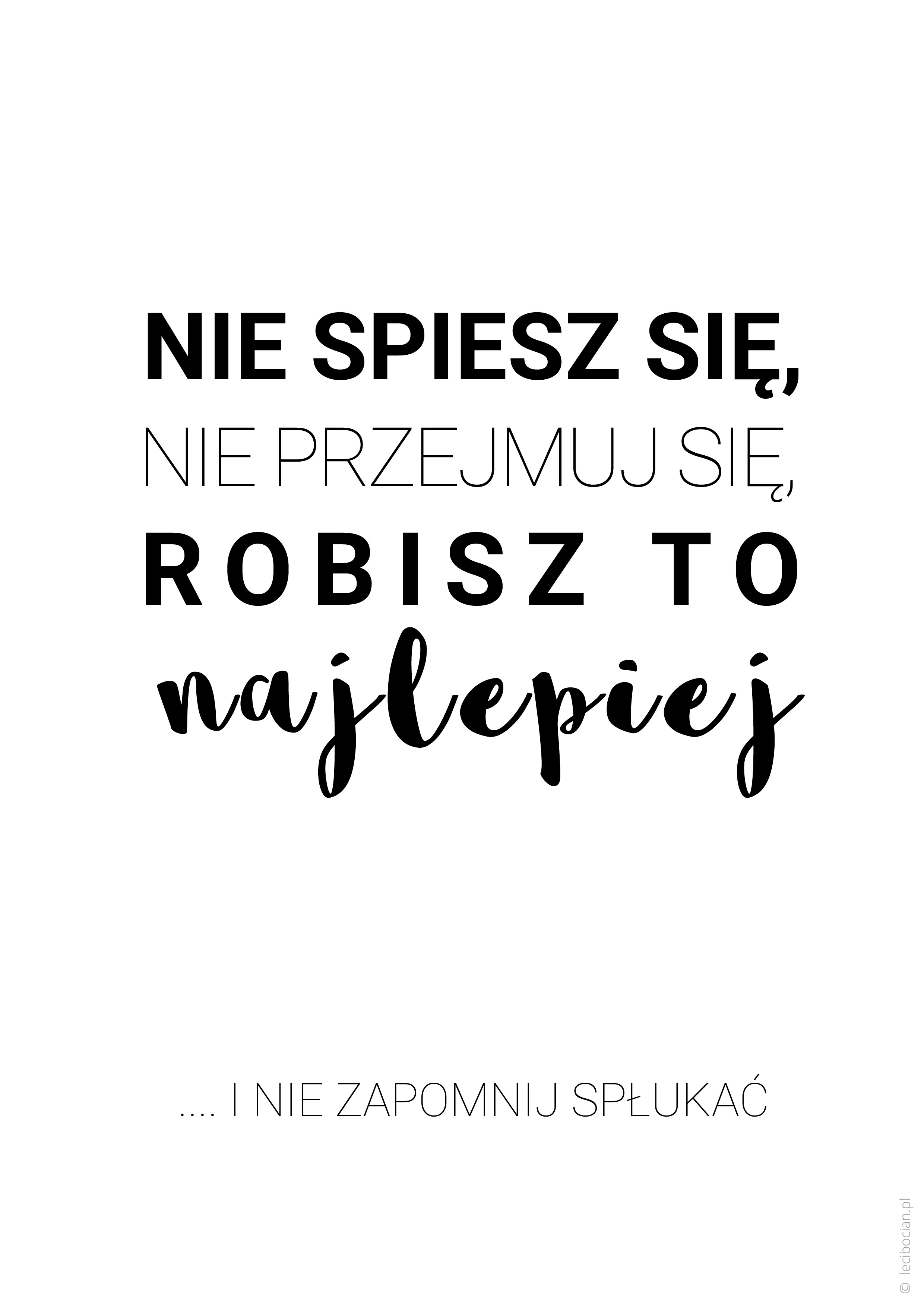 Plakaty do łazienki były dla mnie sporym wyzwaniem, ale pomyślałam, że podejdę do nich z lekkim humorem, bo trochę trudno by mi było podejść do łazienkowych spraw zupełnie na poważnie. Powymyślałam różne teksty – mam nadzieję, że wyszły mi w miarę zabawnie.