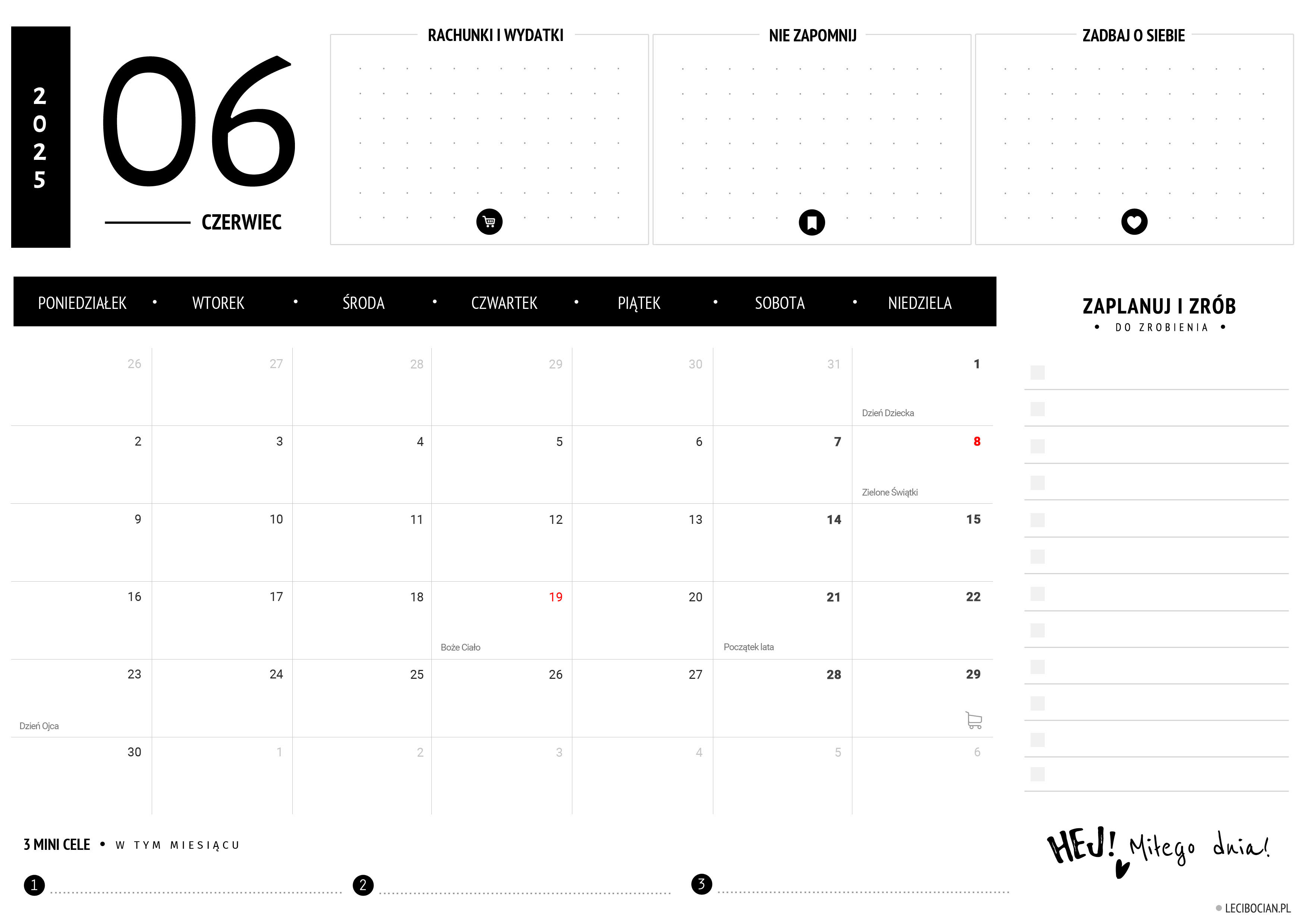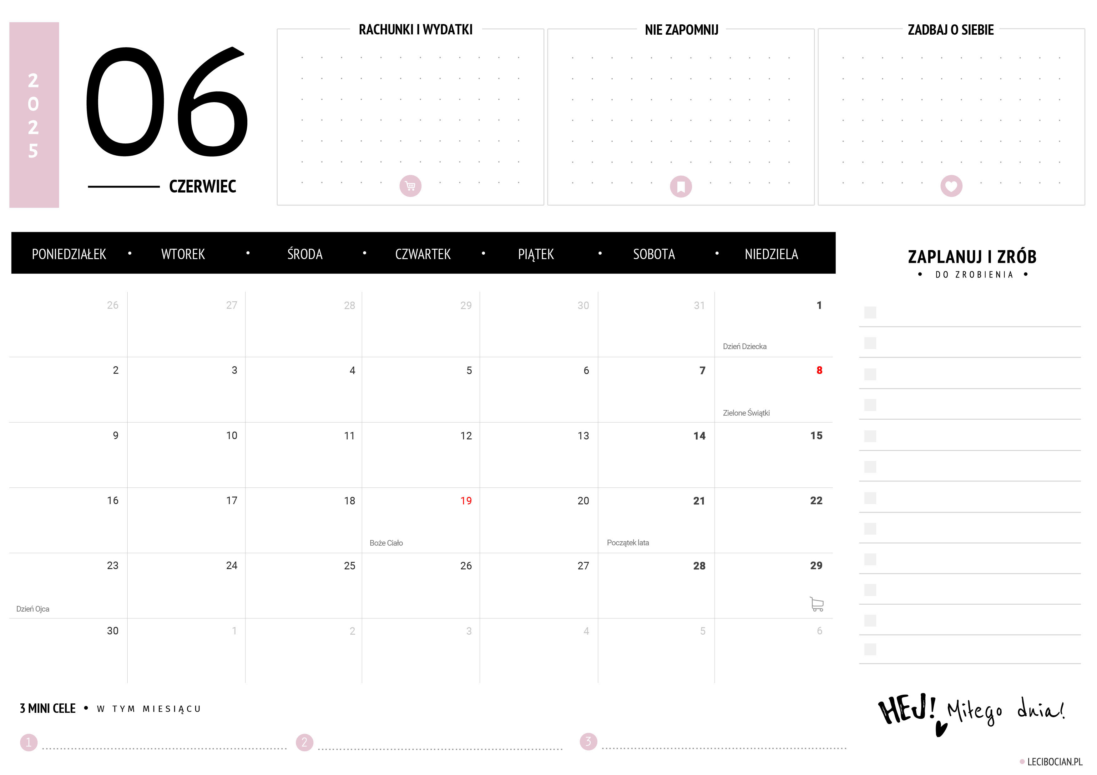 Wydrukuj darmowy planer na czerwiec 2025