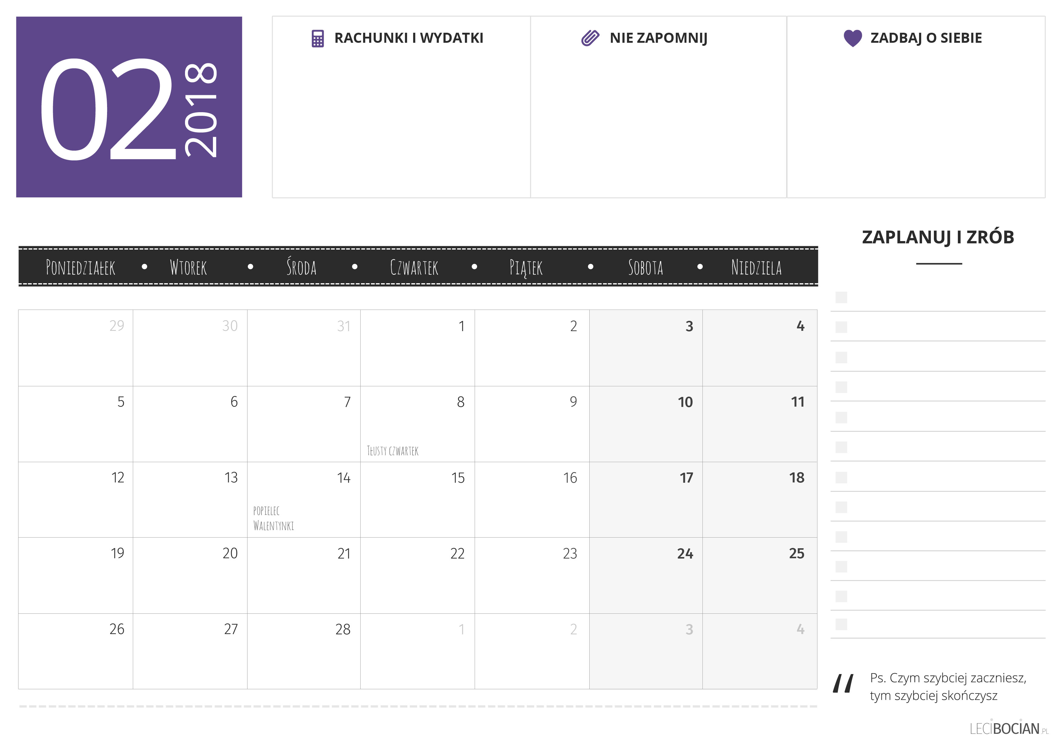 Planer do druku – luty 2018