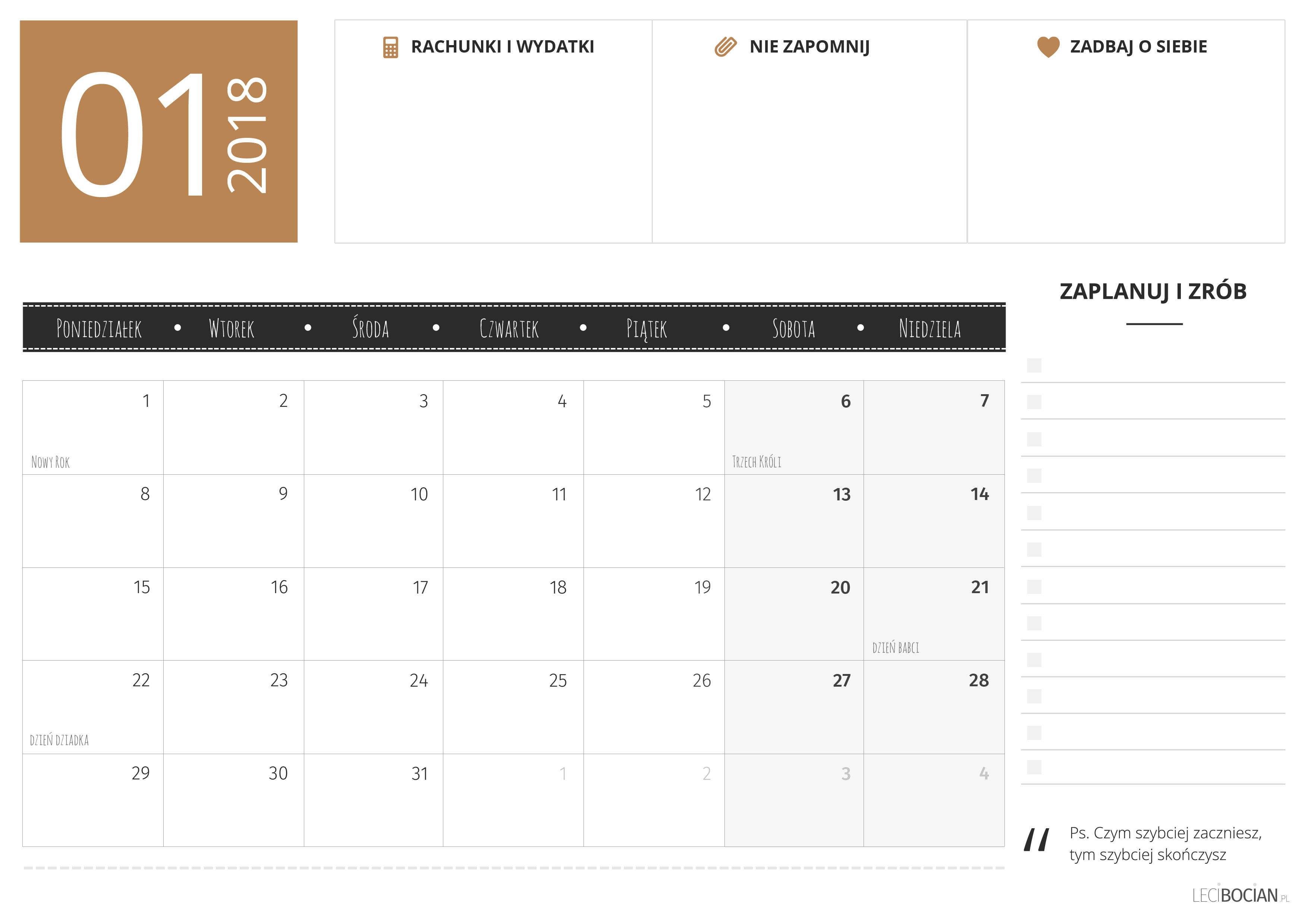 Planer do druku styczeń 2018