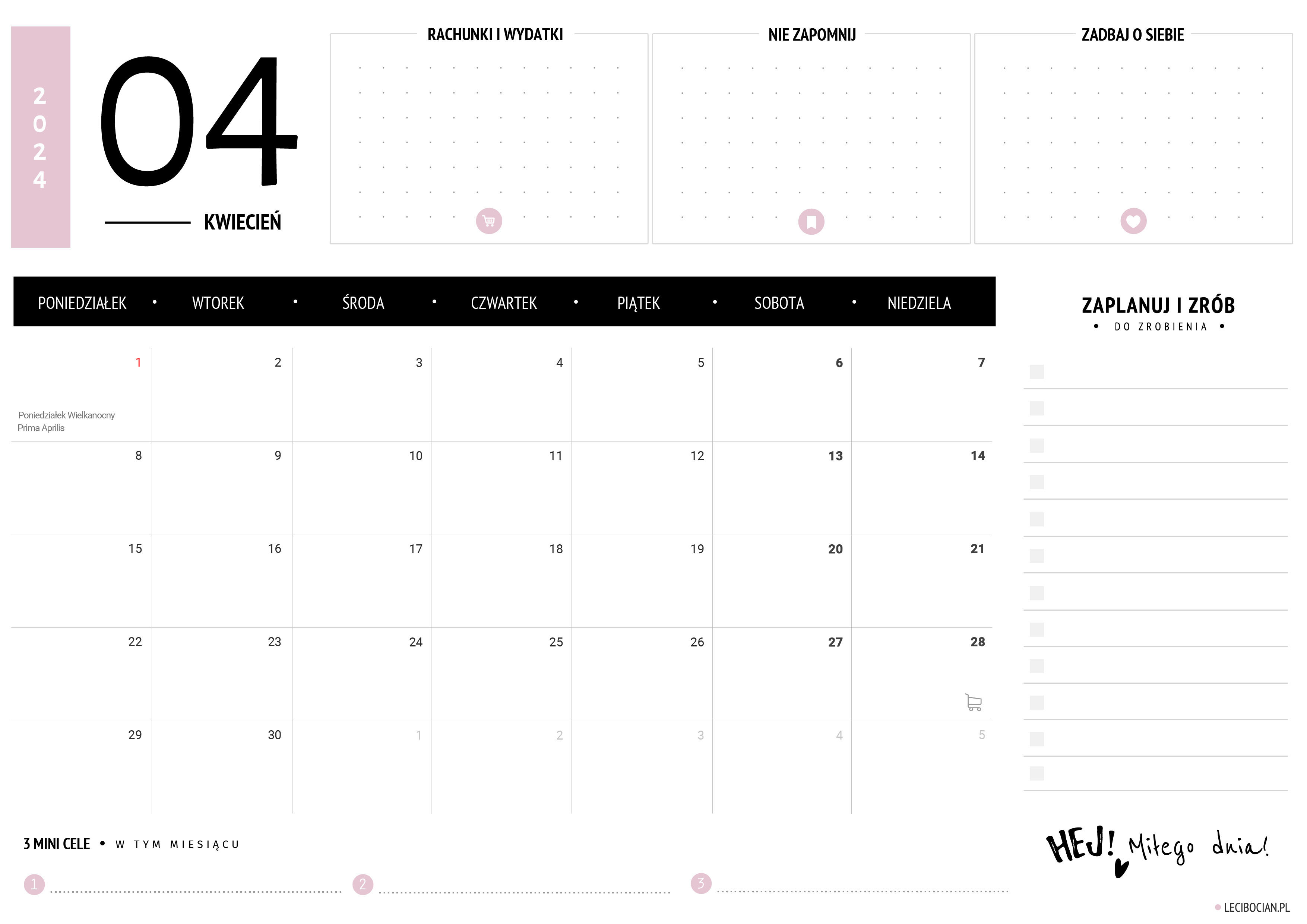 Wydrukuj darmowy planer na kwiecień 2024