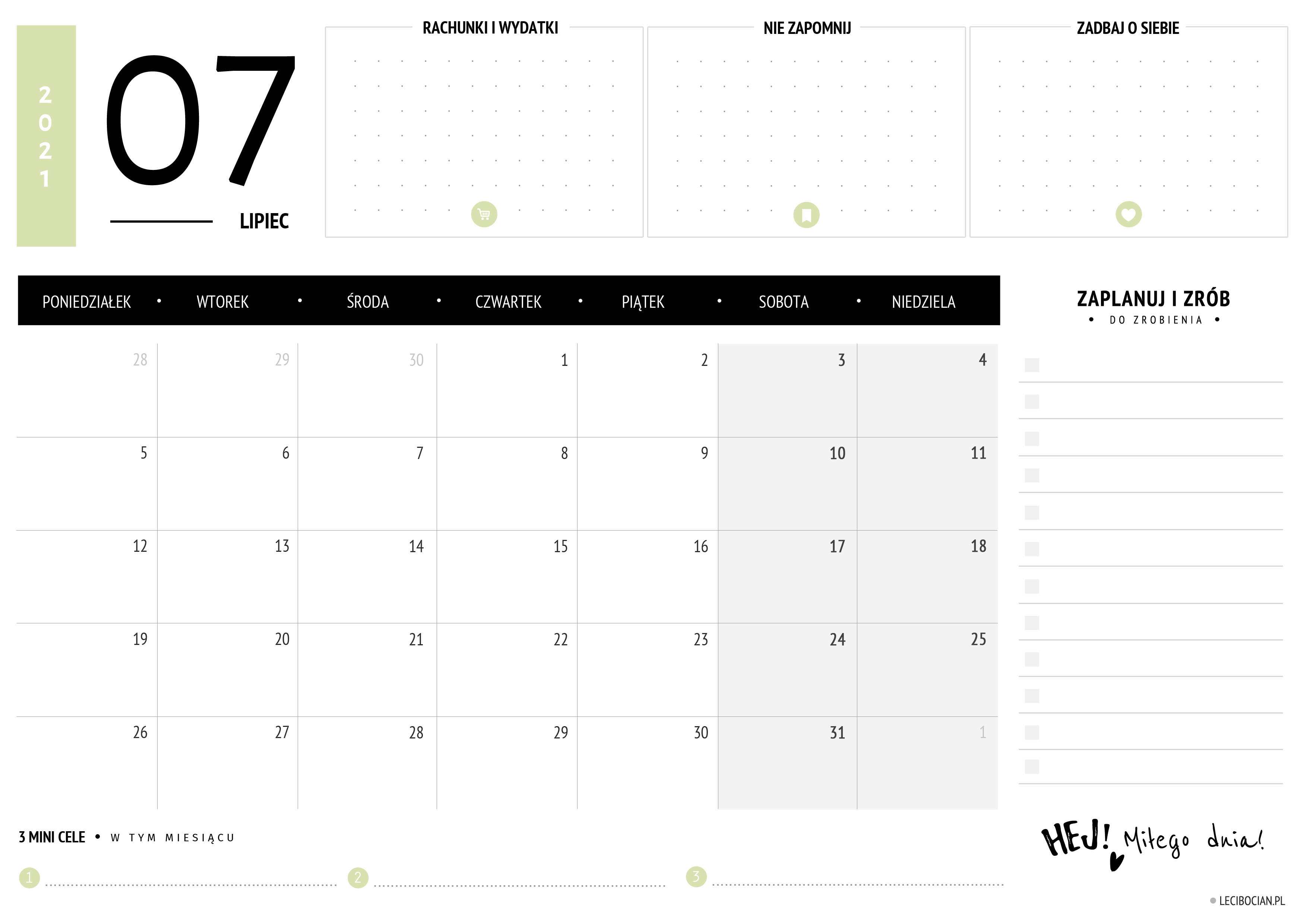 Wydrukuj darmowy planer na lipiec 2021