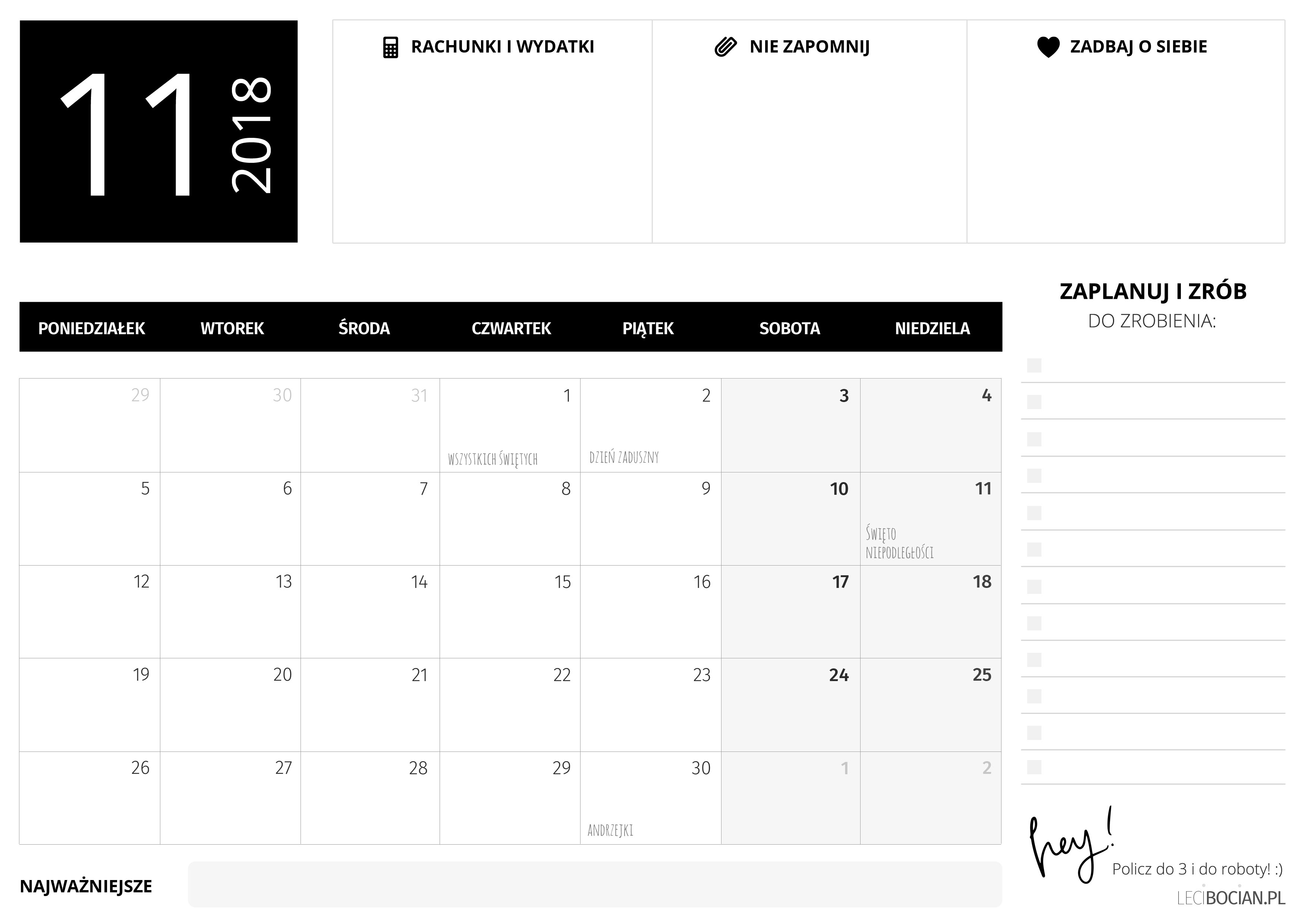 Darmowy planer do druku listopad 2018