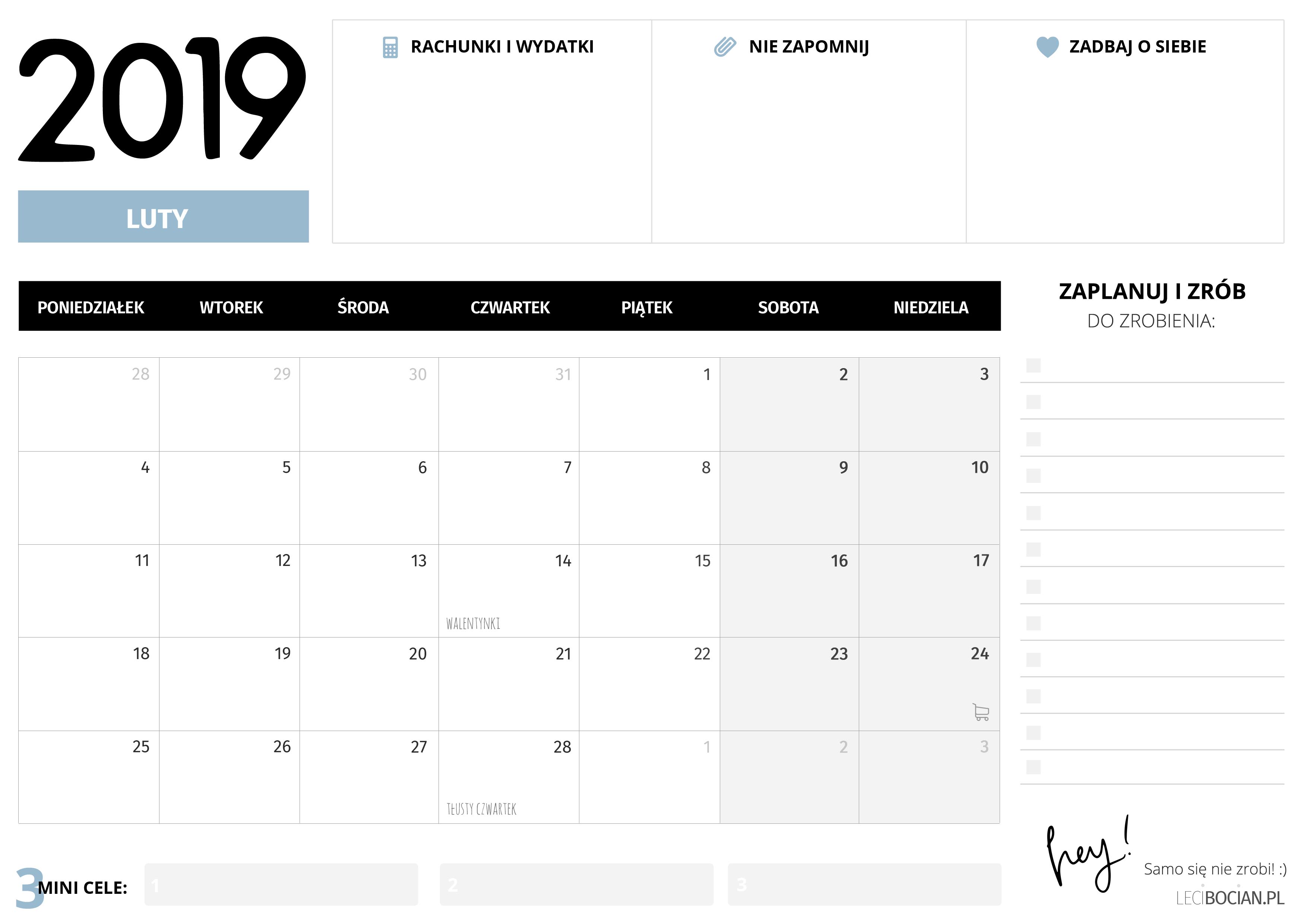 Darmowy planer do druku luty 2019