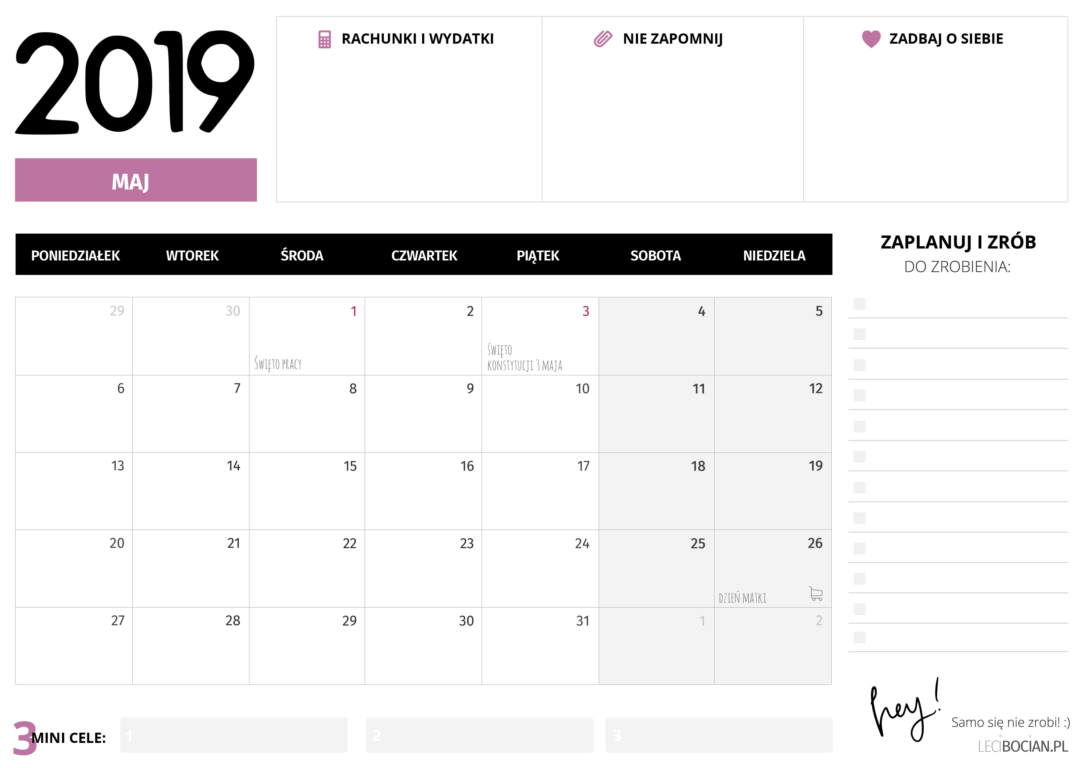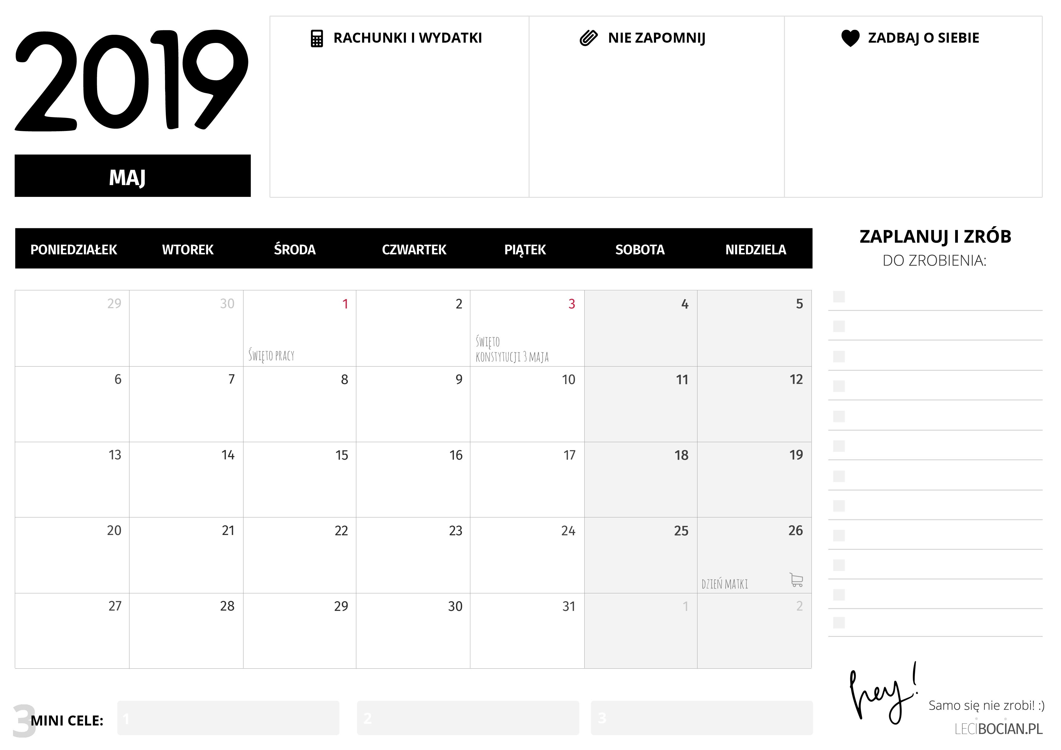 Darmowy planer do druku maj 2019