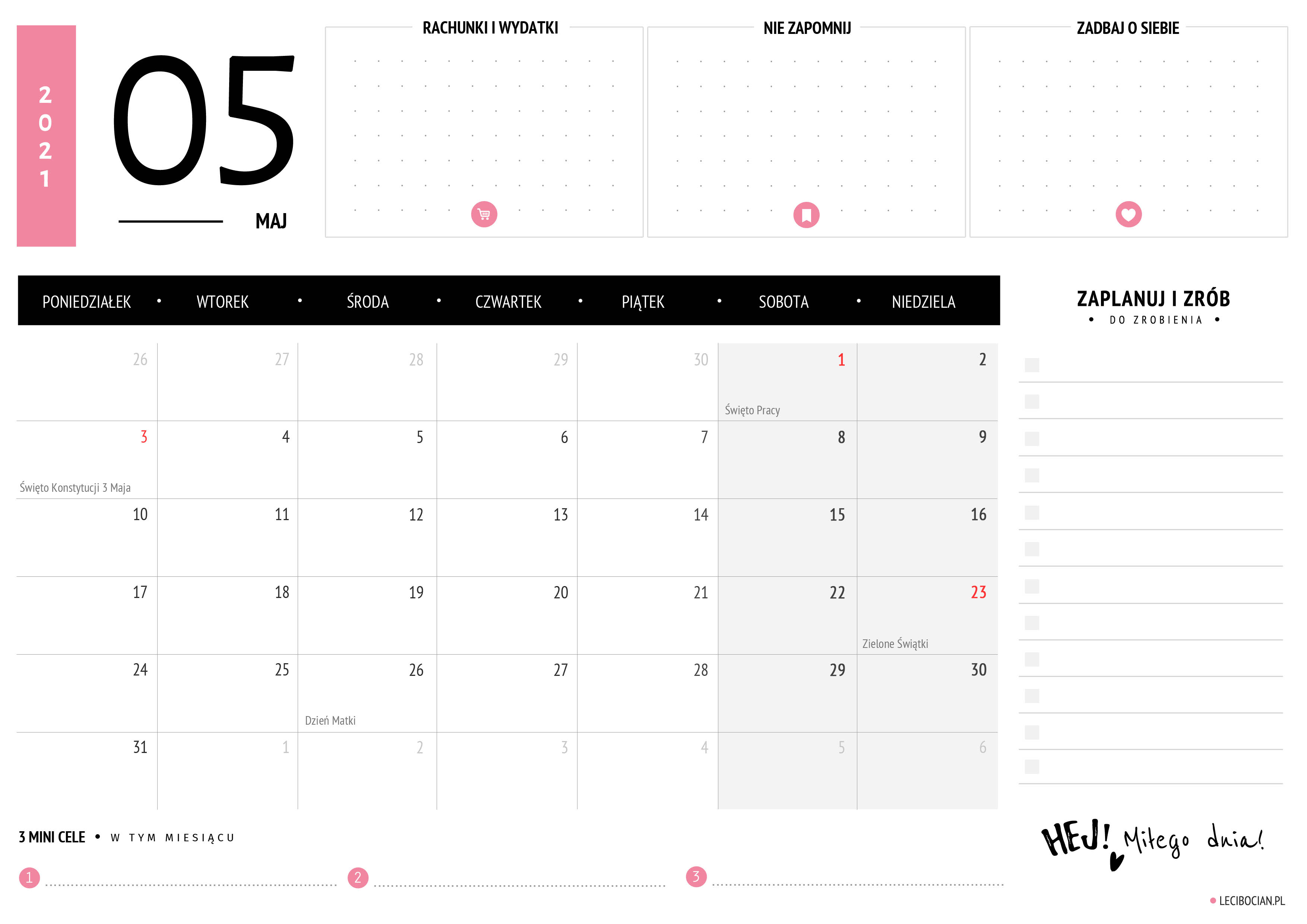 Wydrukuj darmowy planer na maj 2021