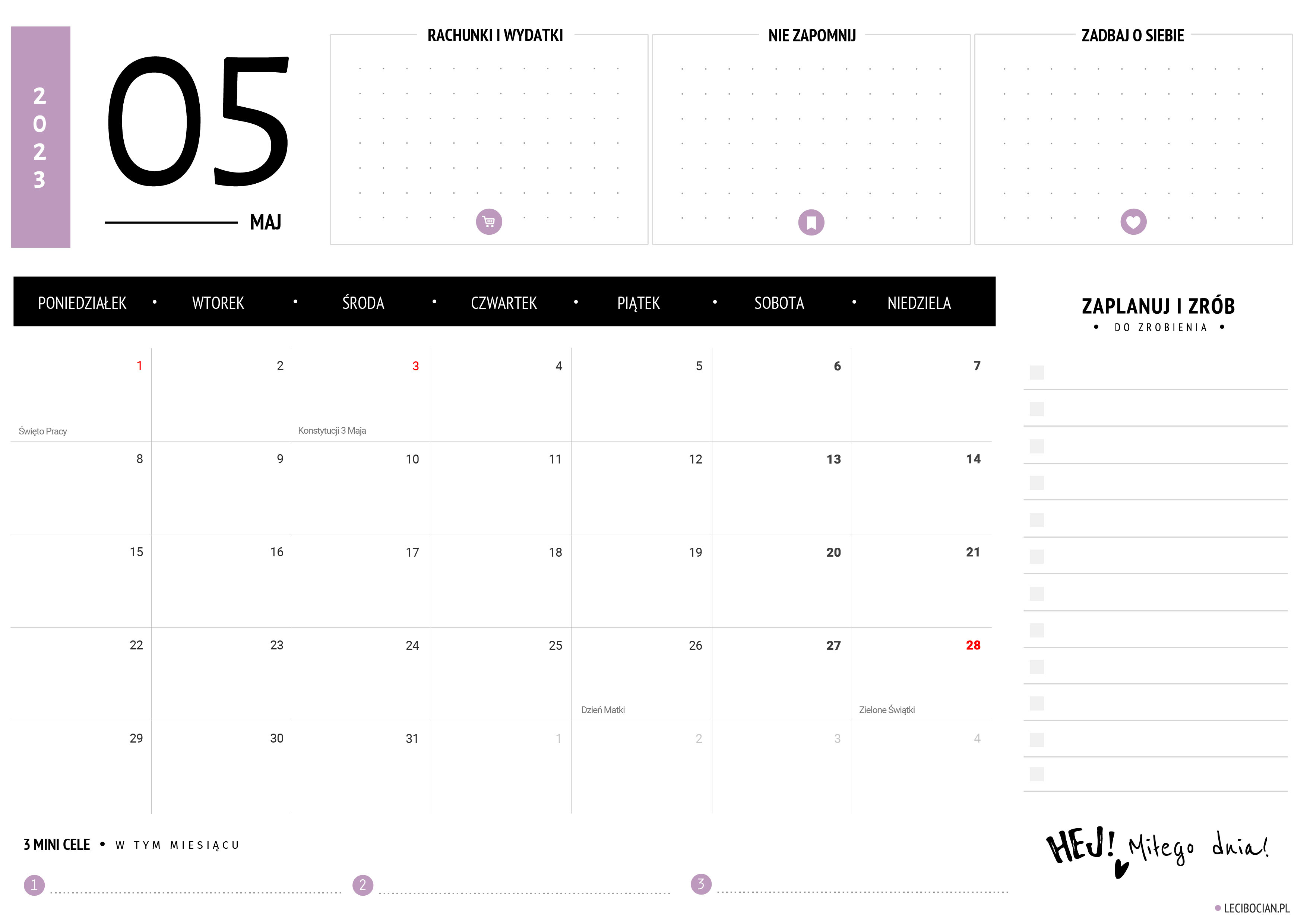 Planer maj 2023 – do druku za darmo