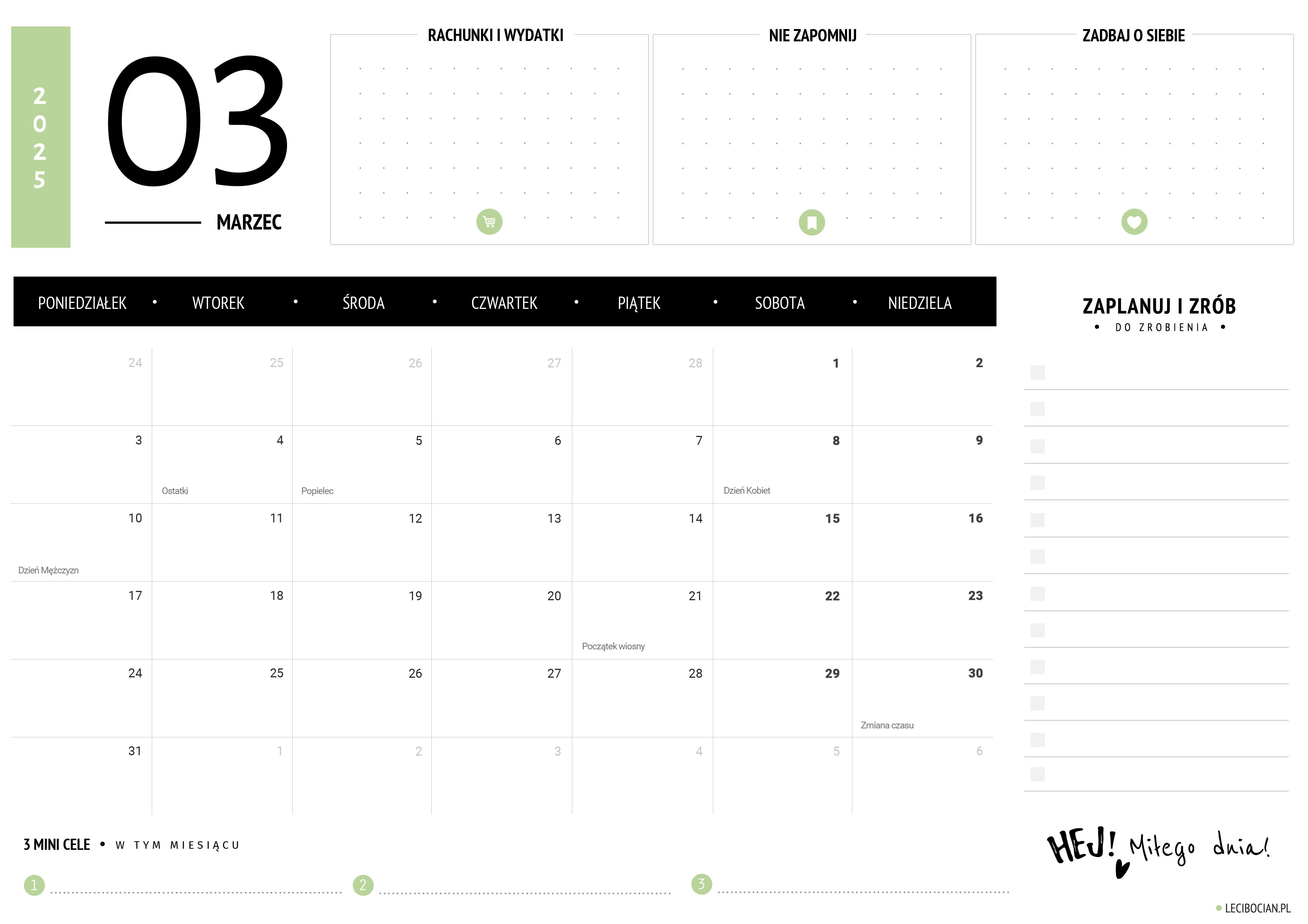 Wydrukuj darmowy planer na marzec 2025