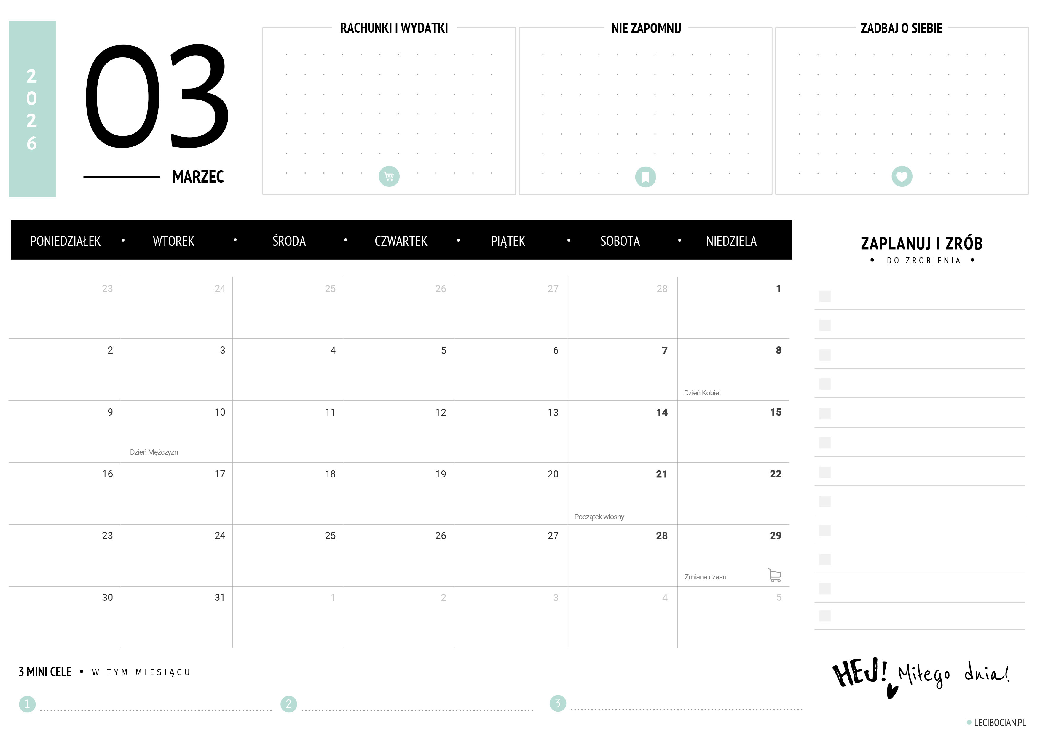 Wydrukuj darmowy planer na marzec 2026