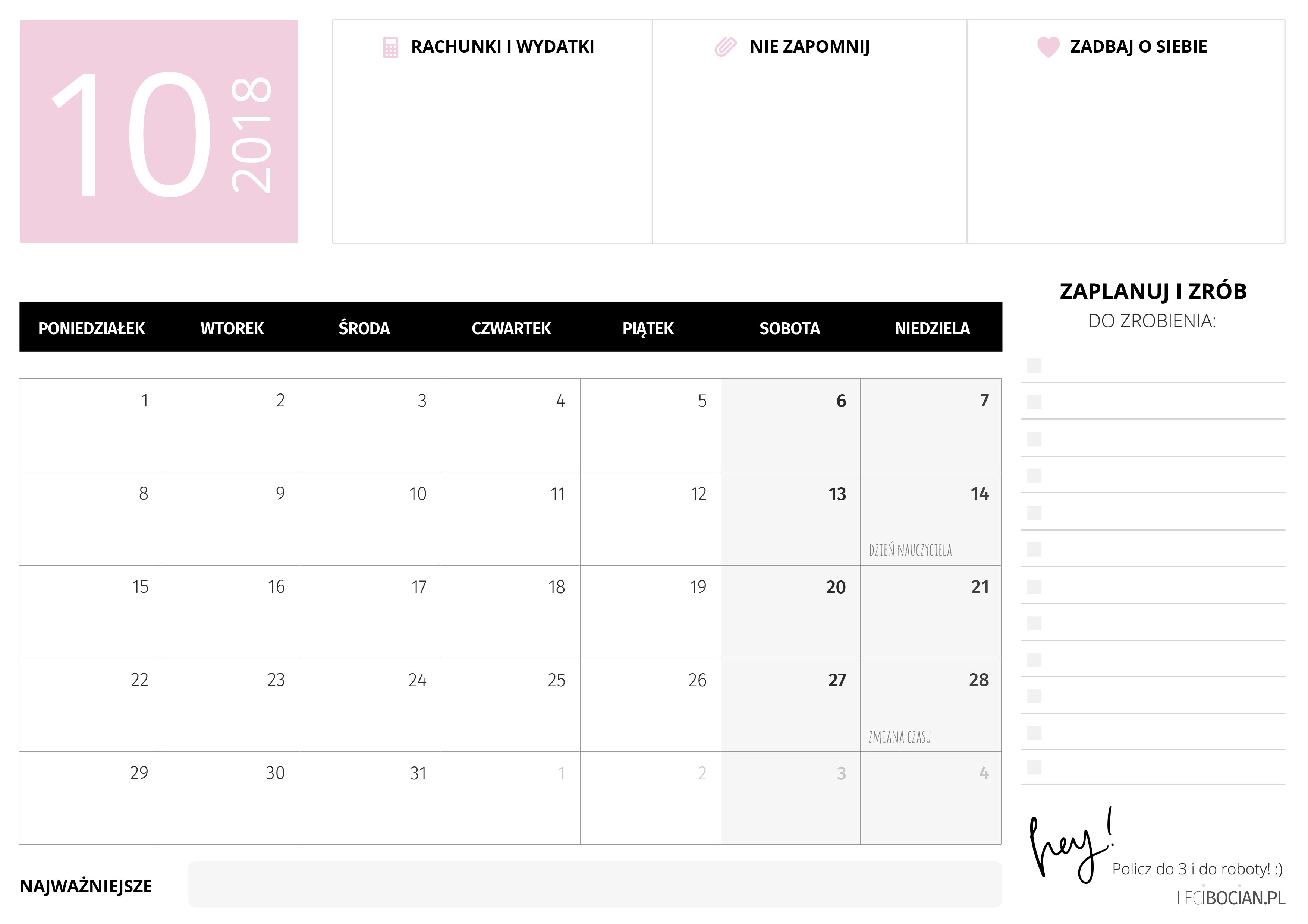 Darmowy planer do druku październik 2018