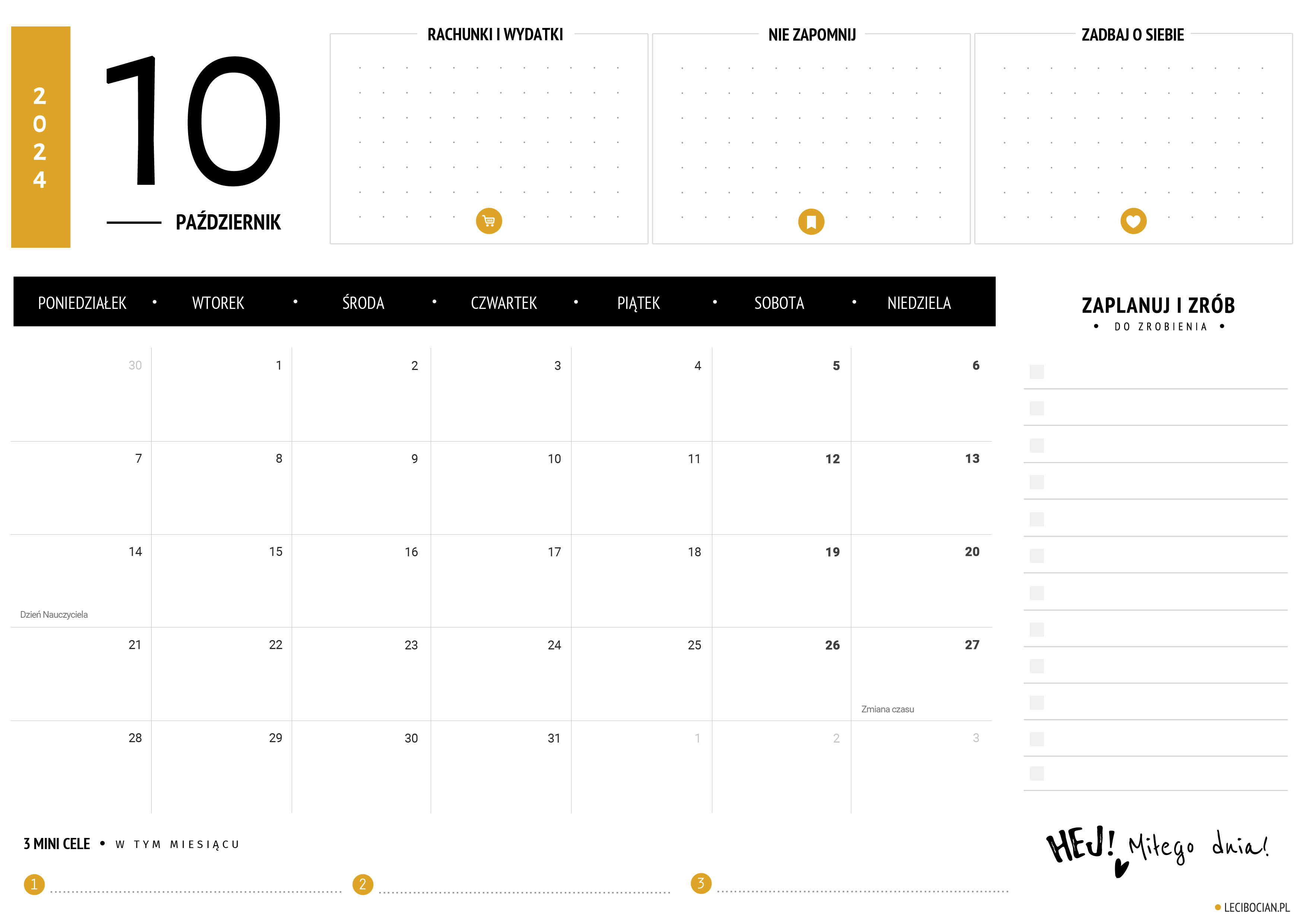 Wydrukuj darmowy planer na październik 2024