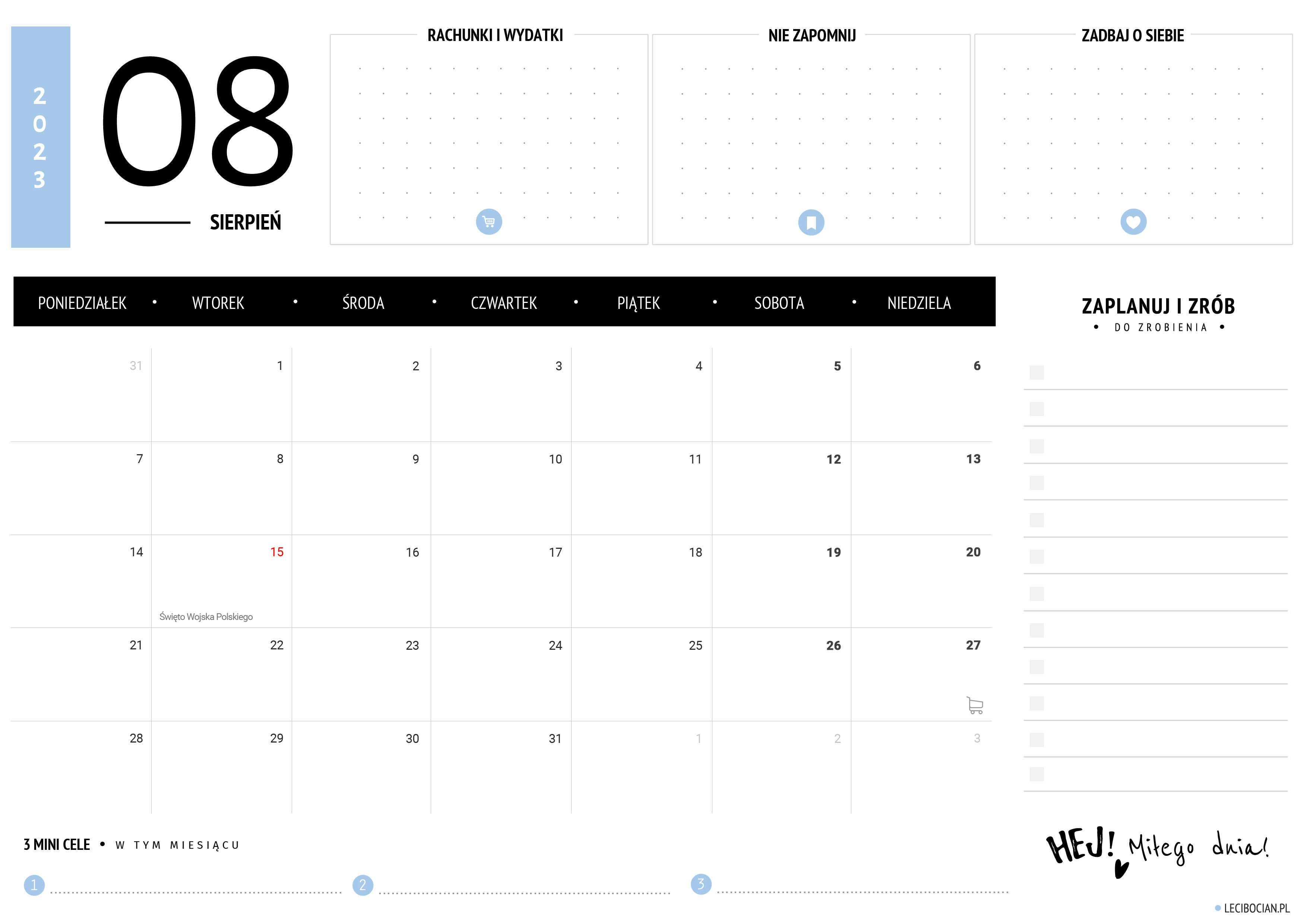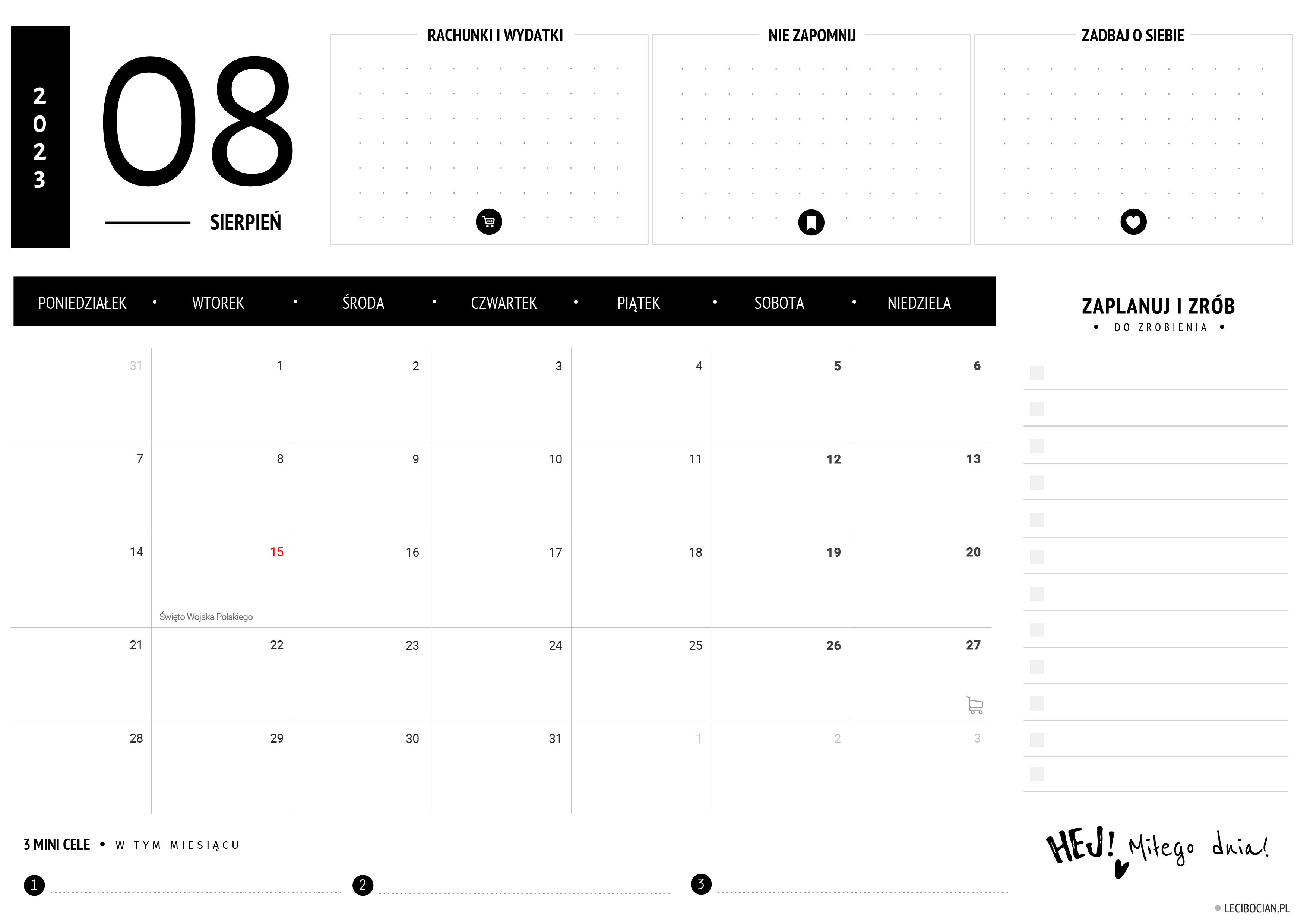 Wydrukuj darmowy planer na sierpień 2023