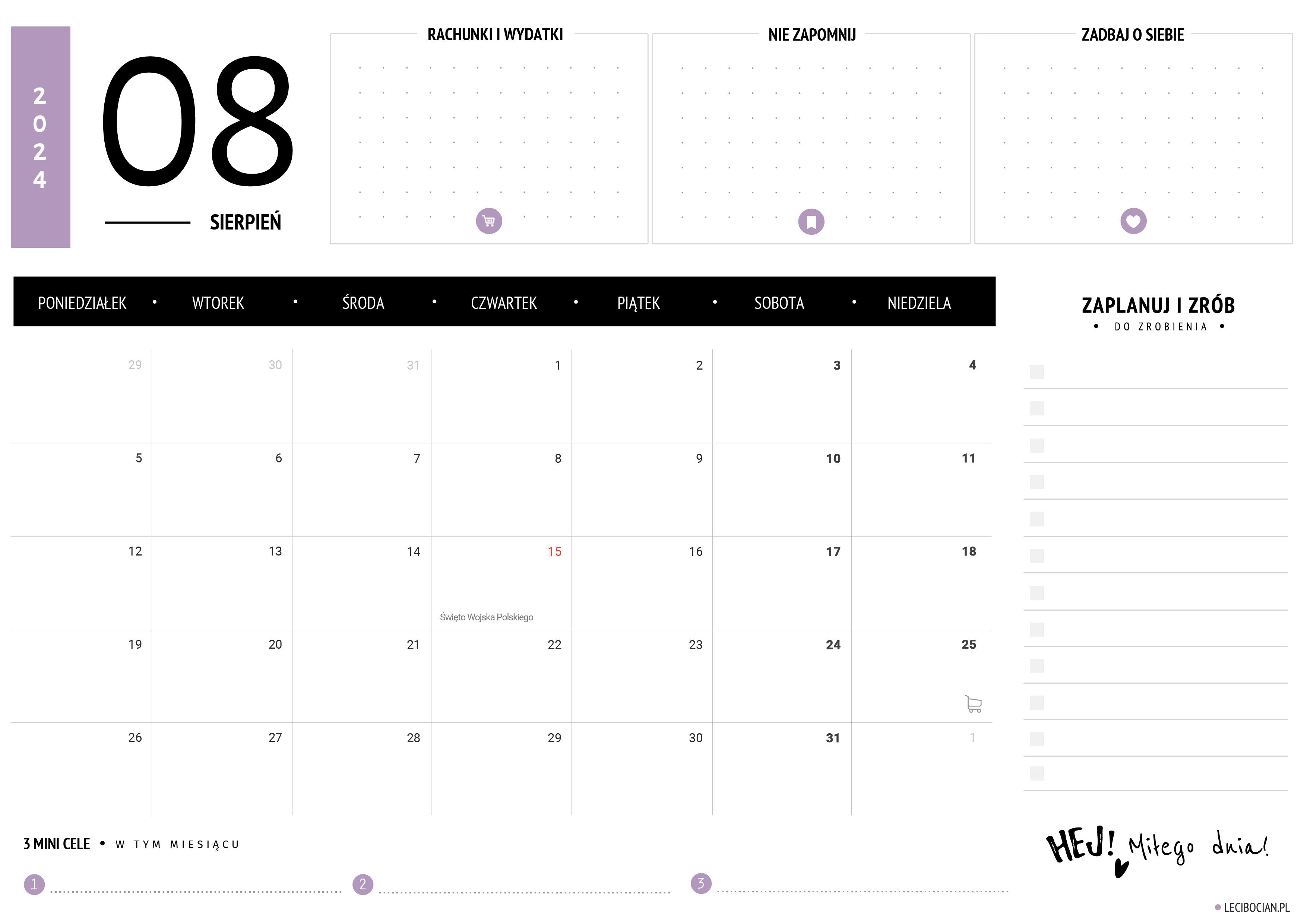 Wydrukuj darmowy planer na sierpień 2024