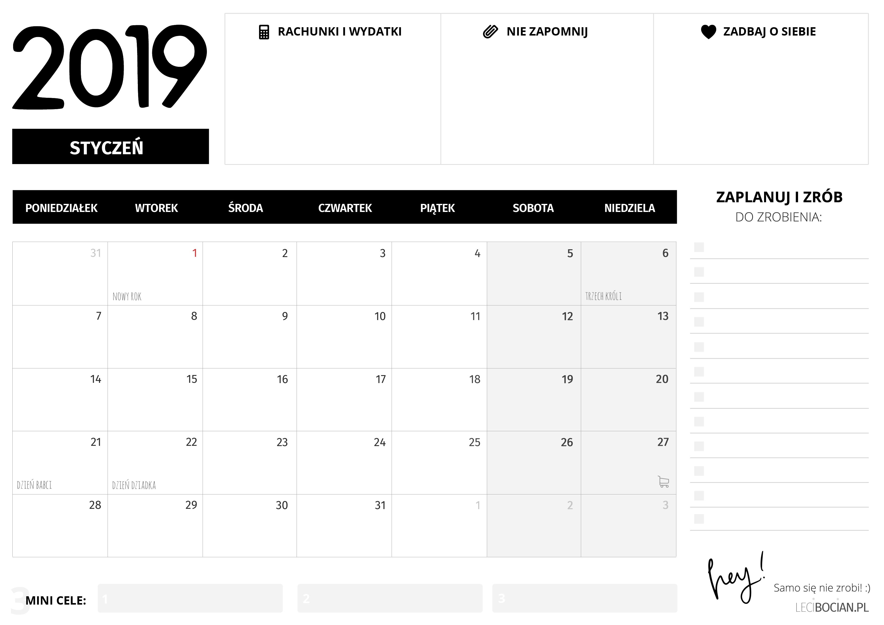 Darmowy planer do druku styczeń 2019