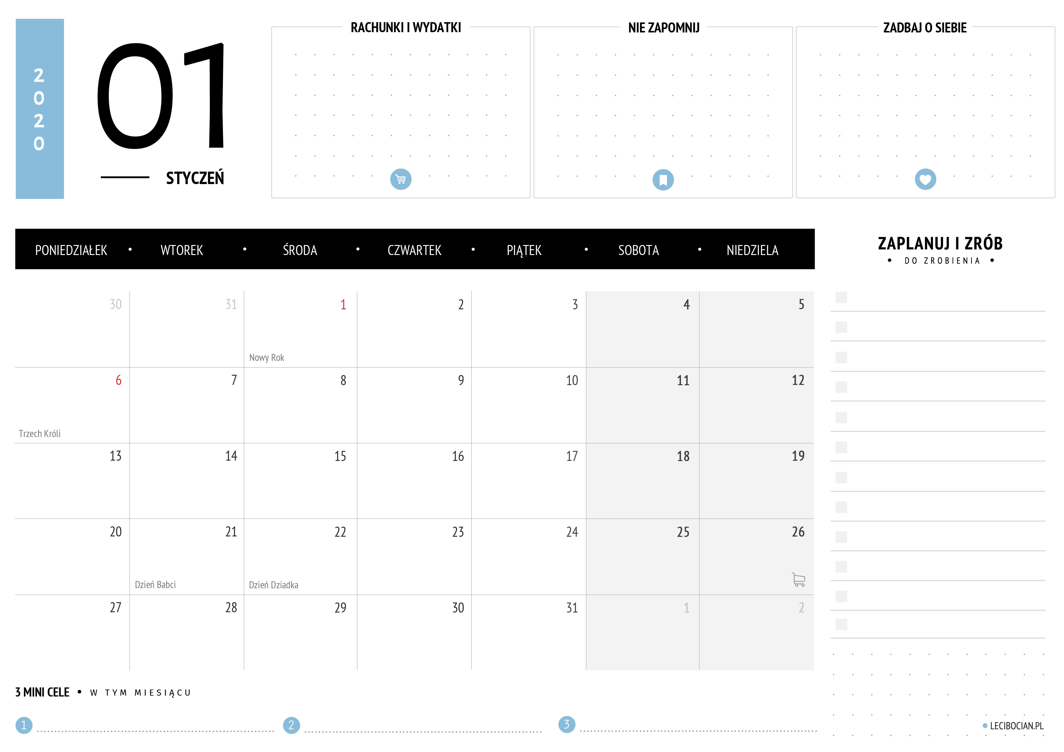 Wydrukuj darmowy planer na styczeń 2020