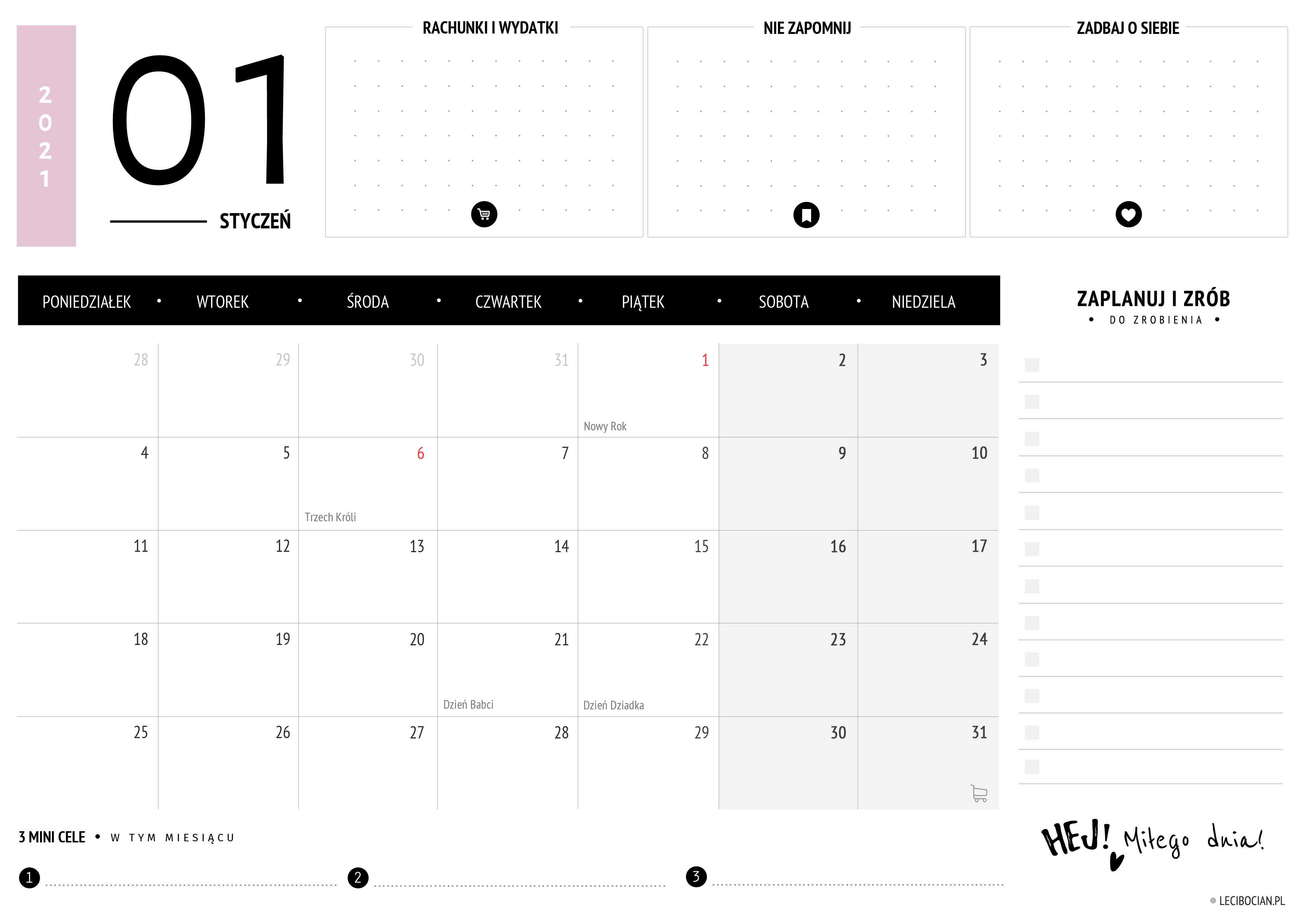 Wydrukuj darmowy planer na styczeń 2021