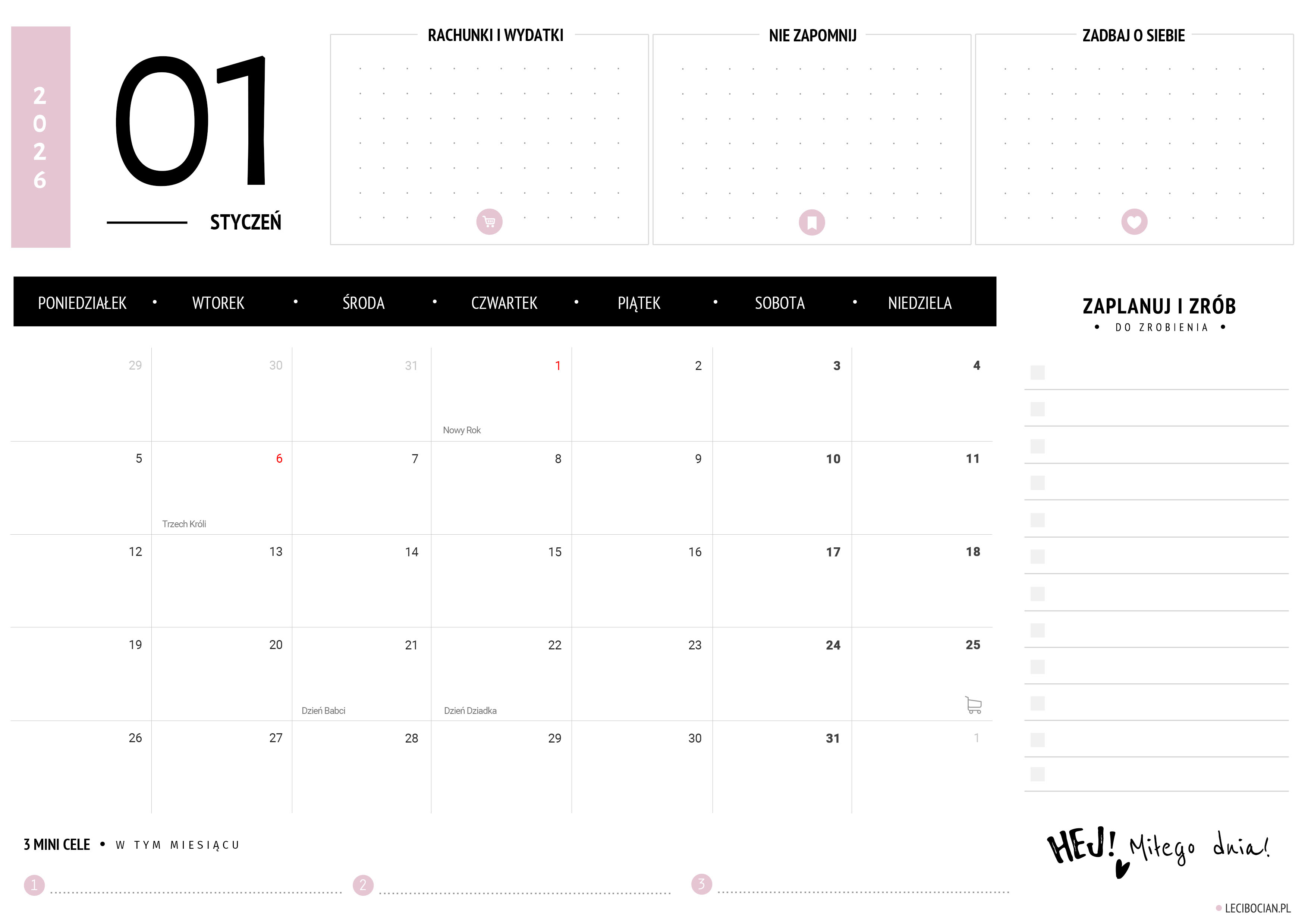 Planer styczeń 2026 do druku – za darmo!
