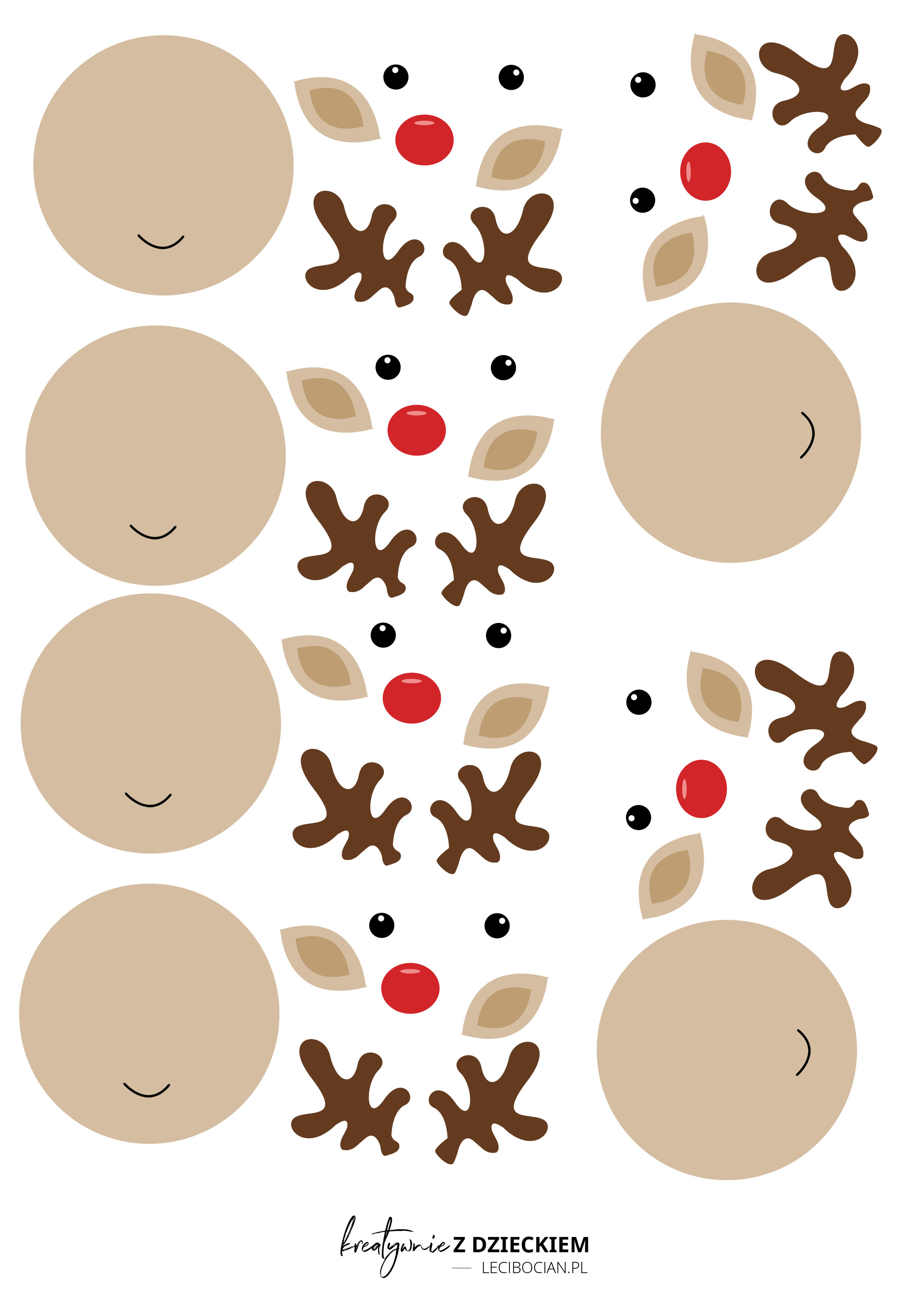 Świąteczne ozdoby dla dzieci – Reniferki do druku