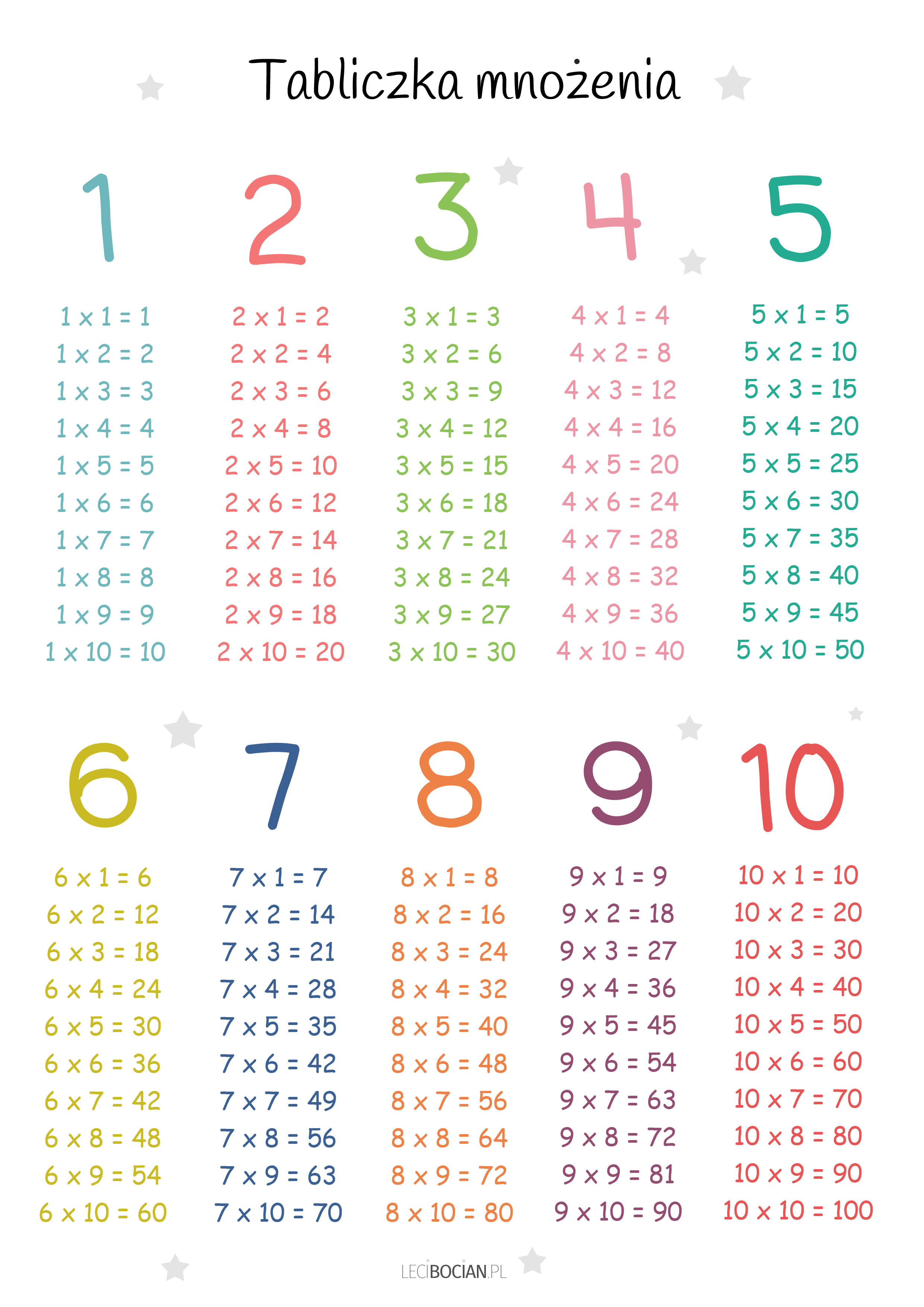 Tabliczka mnożenia do druku w formie plakatu. Darmowa tabliczka mnożenia do pobrania w dwóch wersjach kolorystycznych. Pobierz ją i ucz się mnożenia!