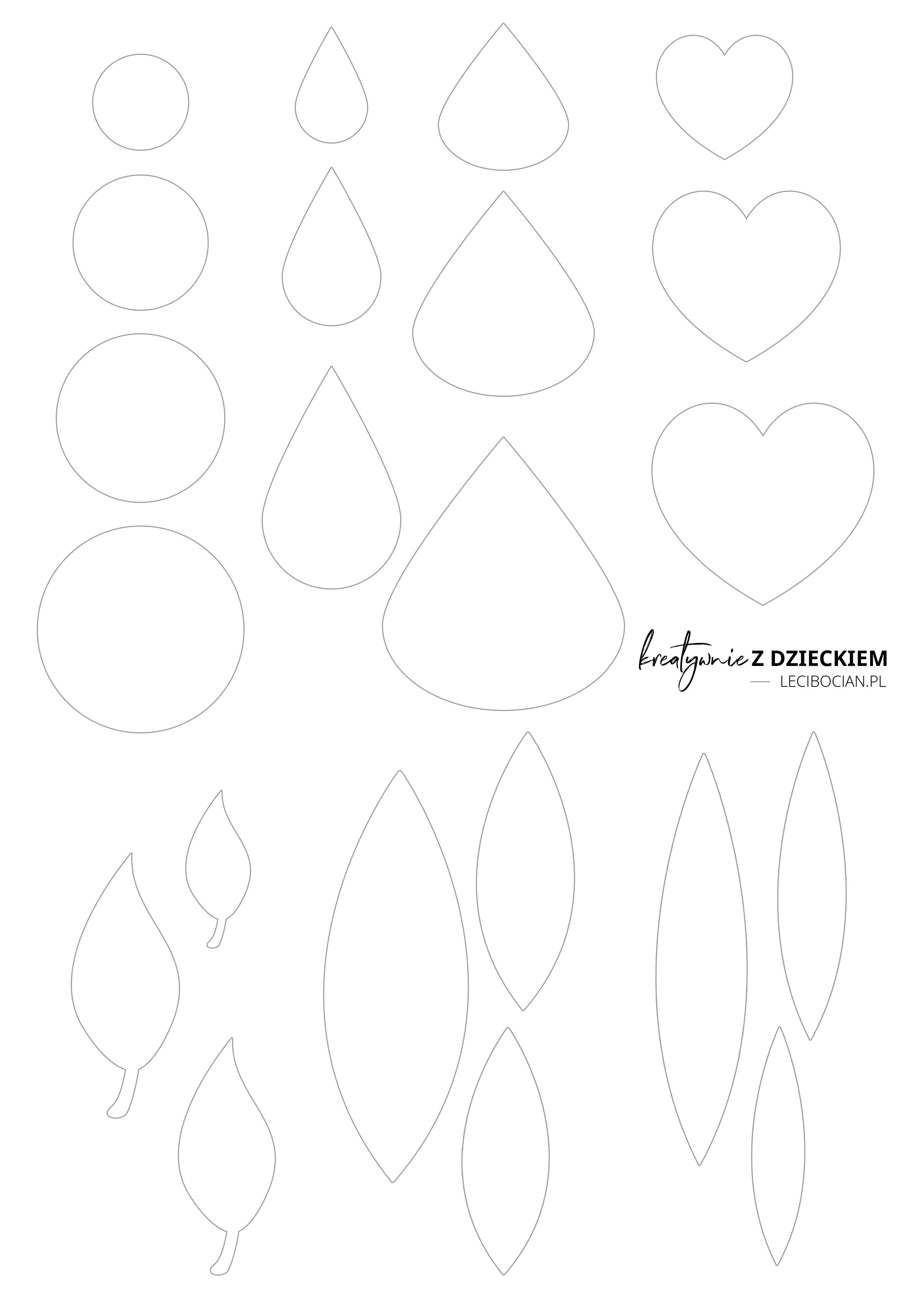 Do wykonania papierowych kwiatków potrzebne będą nożyczki, klej i kolorowe papiery. Aby stworzyć papierowe kwiaty możesz skorzystać z wiosennego szablonu, który możesz pobrać na dole wpisu i wydrukować. Znajdziesz na nim różne kształty płatków i liście, które pomogą Ci stworzyć papierowe kwiaty.